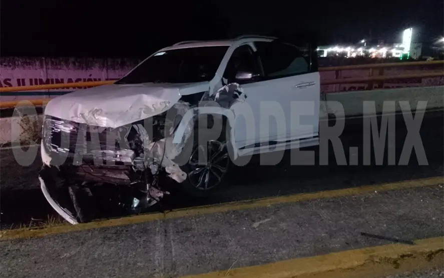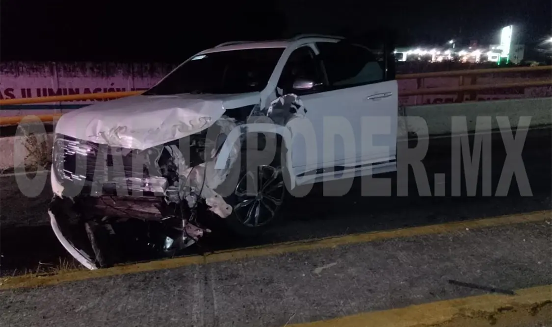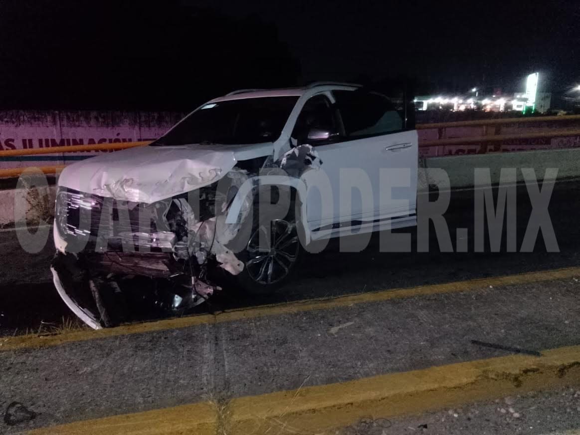 Daños materiales por varios miles de pesos dejó el fuerte impacto de una camioneta contra el muro de contención del puente elevado conocido como "Sam´s", al sur de Tapachula.