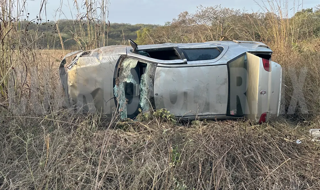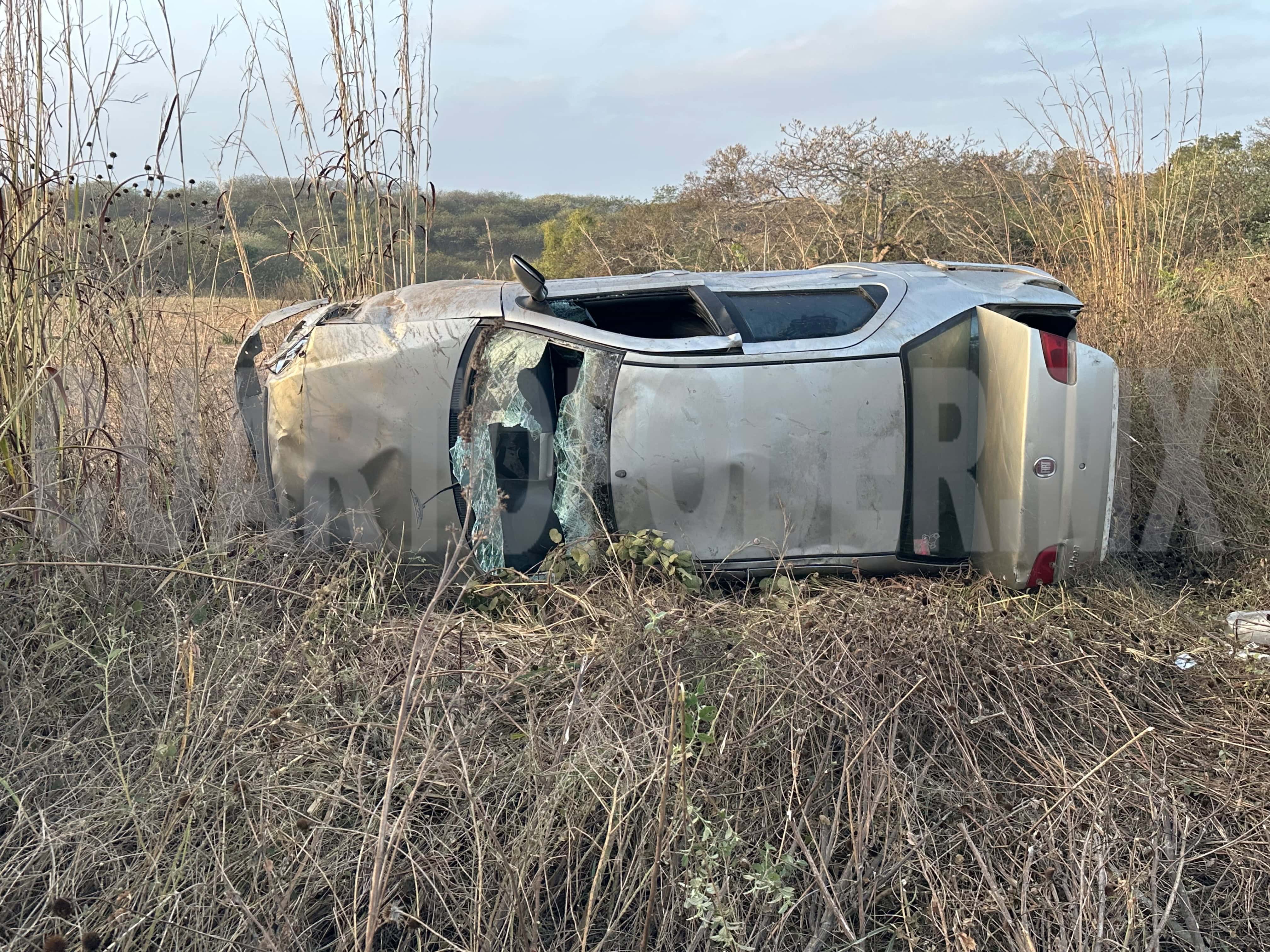 Abandonado tras volcar fuera del camino, quedando con las llantas al aire, fue como finalizó un automóvil sedán la mañana del miércoles en vialidades del municipio de Cintalapa.