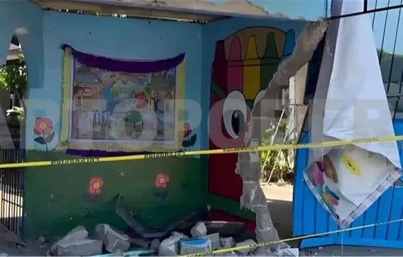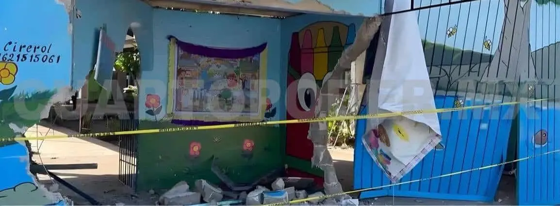 Una camioneta fue abandonada tras impactarse contra la fachada del jardín de niños Emilia Ferreiro, ubicado en el bulevar Cafetales, al sur poniente de la ciudad de Tapachula.