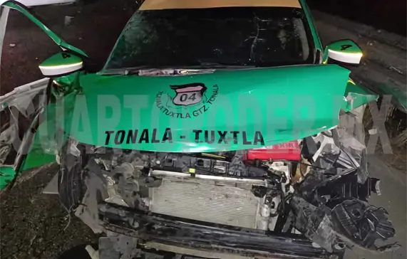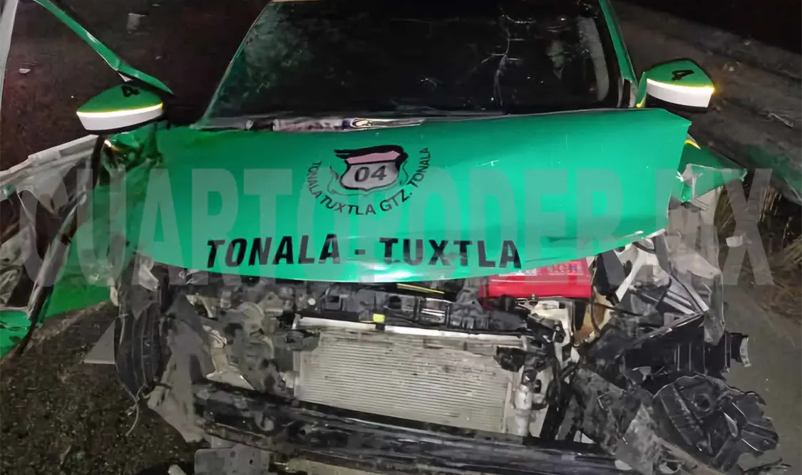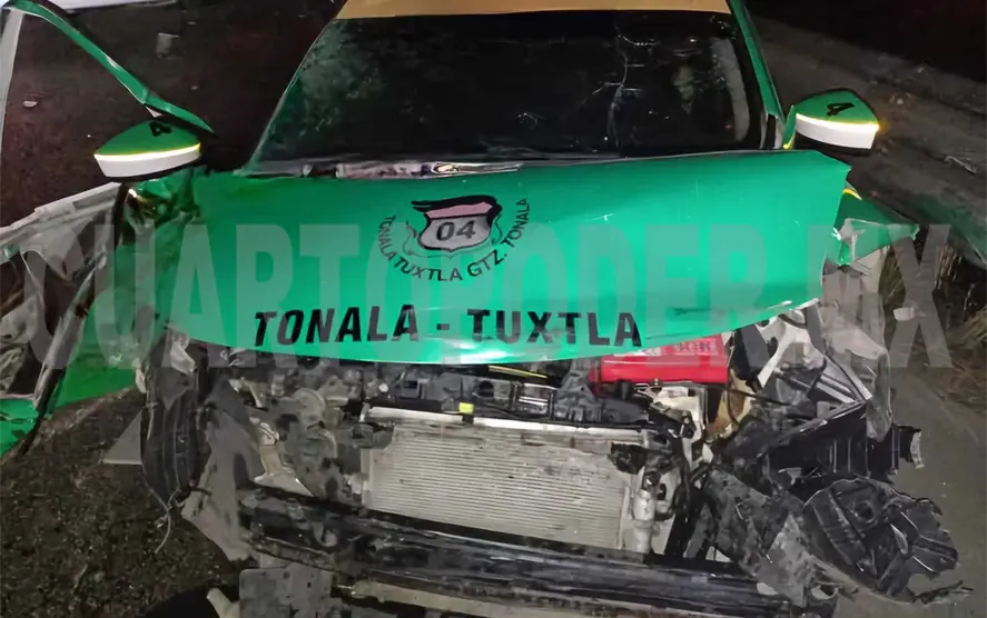 Un taxi terminó con dos pasajeros sin vida y dos severamente lesionados al impactar contra la banda metálica de contención en la la vía Coita-Arriaga y después contra un autobús de pasaje, la tarde del domingo en Ocozocoautla.
