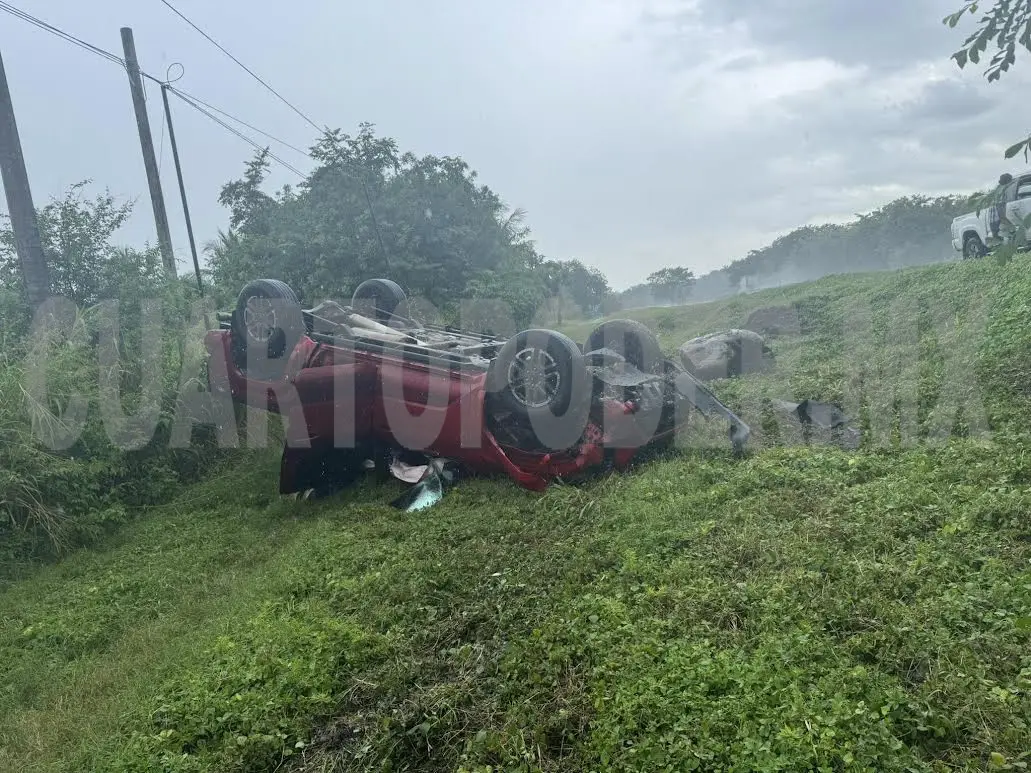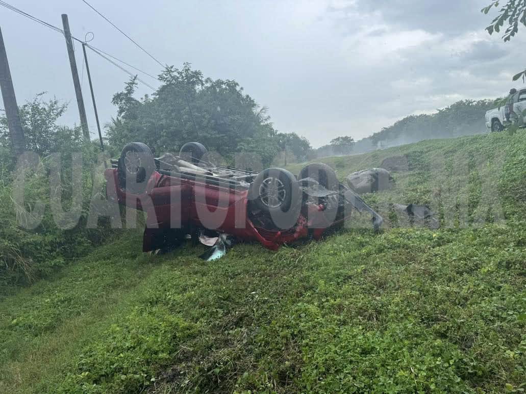 El alcalde de Mapastepec, Amando Espinosa Cruz, resultó milagrosamente ileso, luego que la camioneta en que se desplazaba se salió de la carretera y dio varias vueltas, quedando con las llantas hacia arriba.