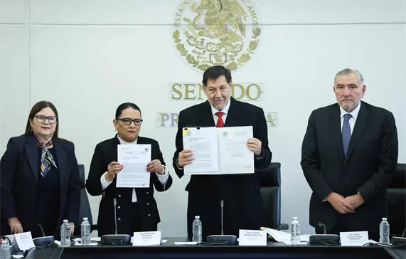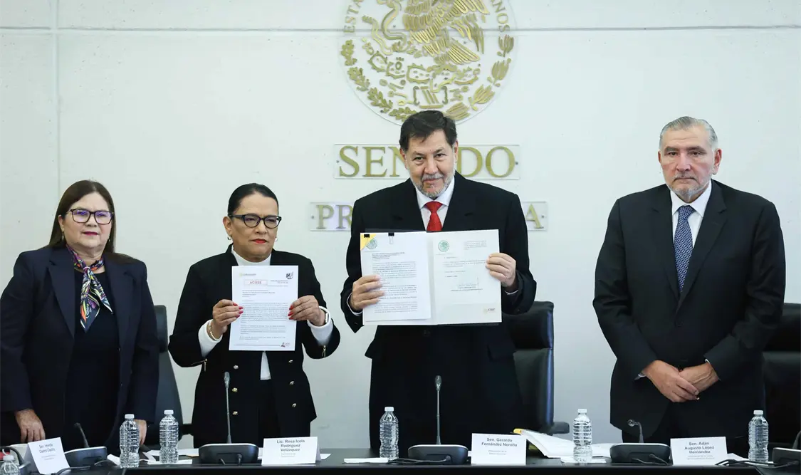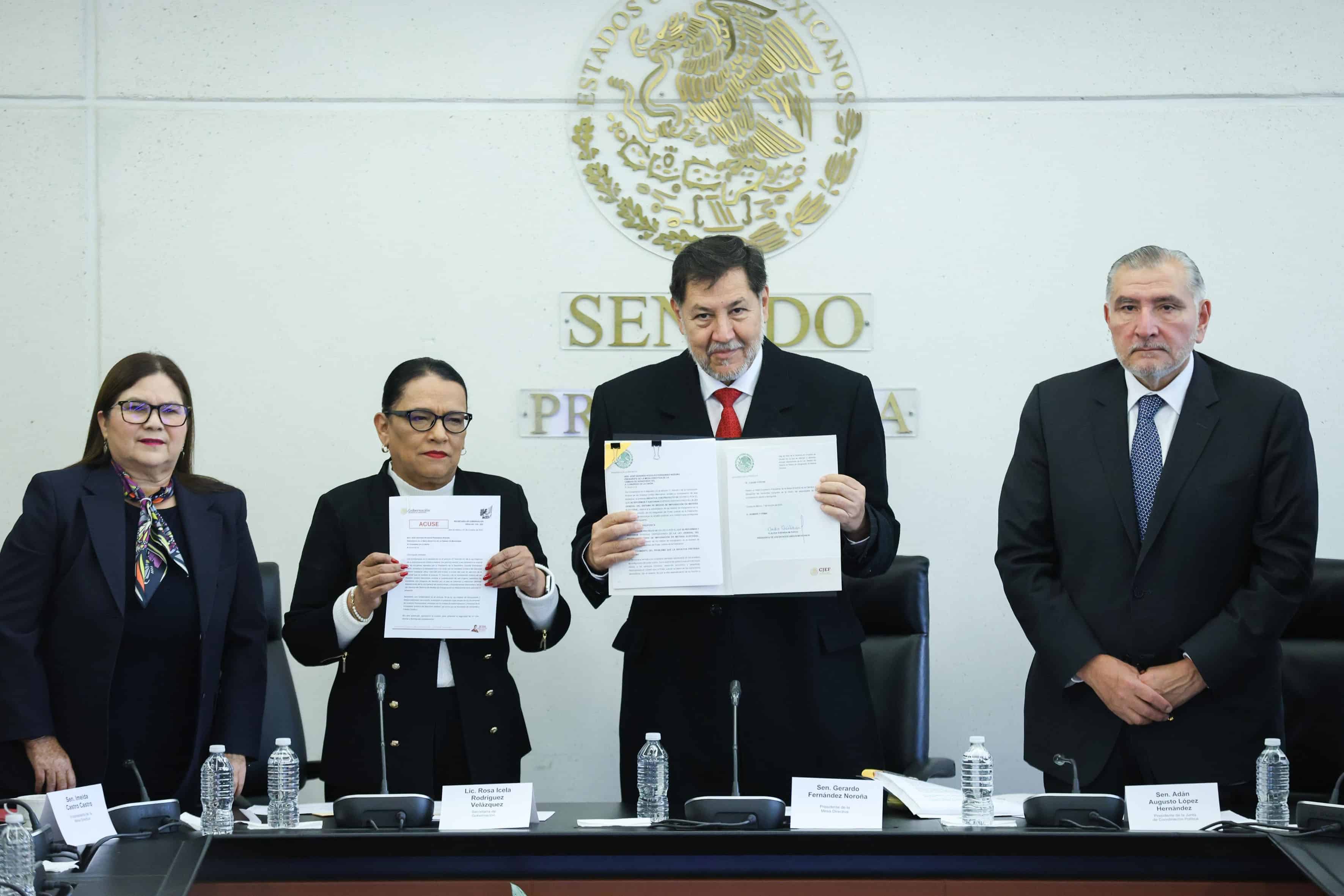 México.- Al recibir de manos de la secretaria de Gobernación, Rosa Icela Rodríguez, las iniciativas de reforma a la Ley General de Instituciones y Procedimientos Electorales y a la Ley General del Sistema de Medios de Impugnación, el presidente del Senado, Gerardo Fernández Noroña, adelantó que el Pleno de la Cámara Alta desahogará los dictámenes este miércoles 9 de octubre.