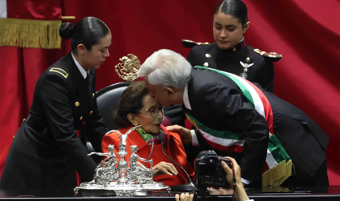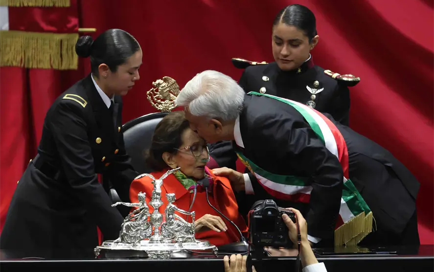 Al subir a la Mesa Directiva, y en medio de gritos de apoyo de legisladores de Morena, PT y Verde, López Obrador saludó al presidente del Senado, Gerardo Fernández Noroña y posteriormente, a la presidenta de la Cámara de Diputados, Ifigenia Martínez.