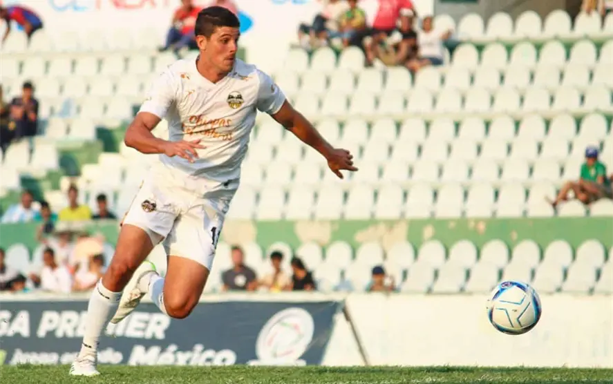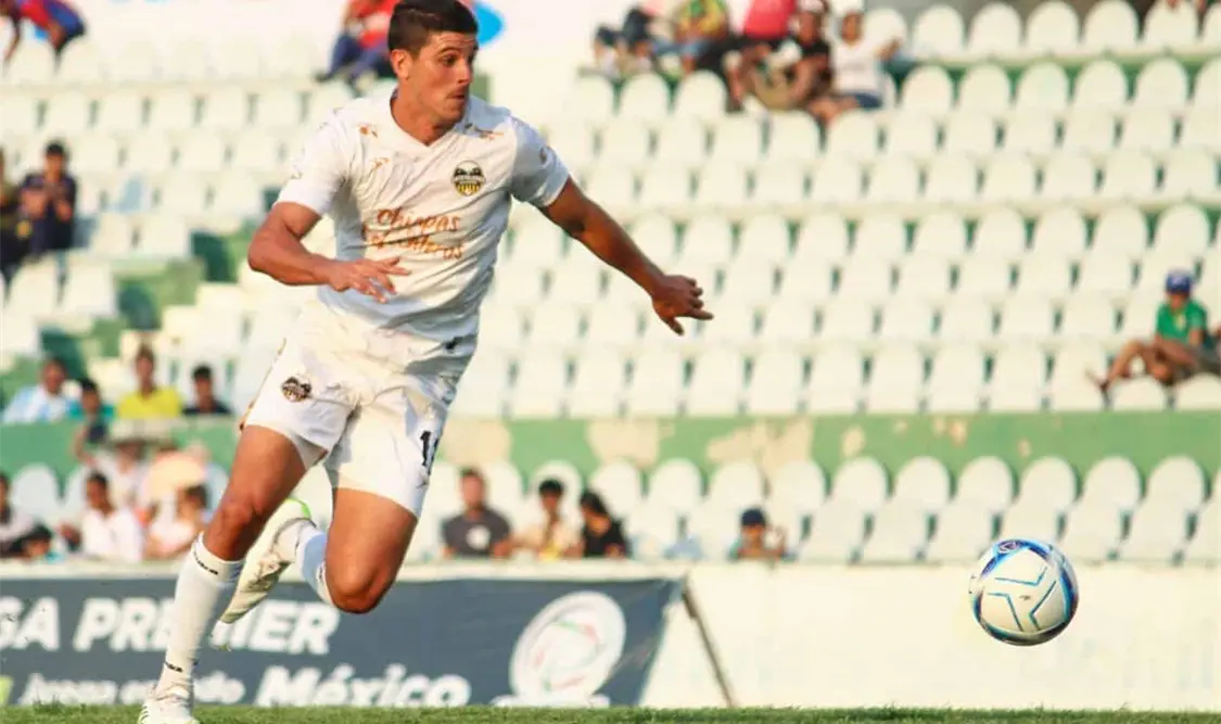 El goleador argentino de Cafetaleros de Chiapas Nicolás Ankia Cohen celebró con mesura el triplete que registró en la victoria de 4-0 sobre Sporting Canary, en la reciente fecha 30 de la Liga Premier Serie A.