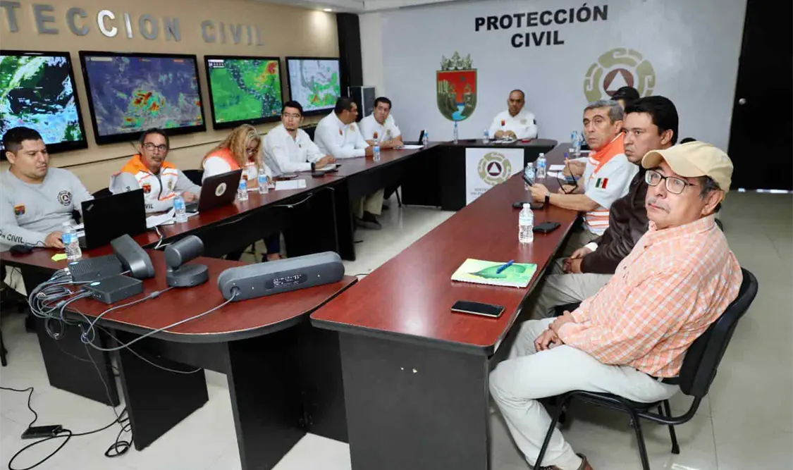 Tuxtla Gutiérrez, Chiapas, a 26 de octubre de 2023.- El Sistema Estatal de Protección Civil llevó a cabo la 22.ª sesión del Comité Estatal de Emergencias, con el objetivo de coordinar acciones de preparación, prevención y atención a la población ante los posibles efectos que pudiera generar una zona de baja presión con probabilidad de desarrollo ciclónico y un sistema frontal.