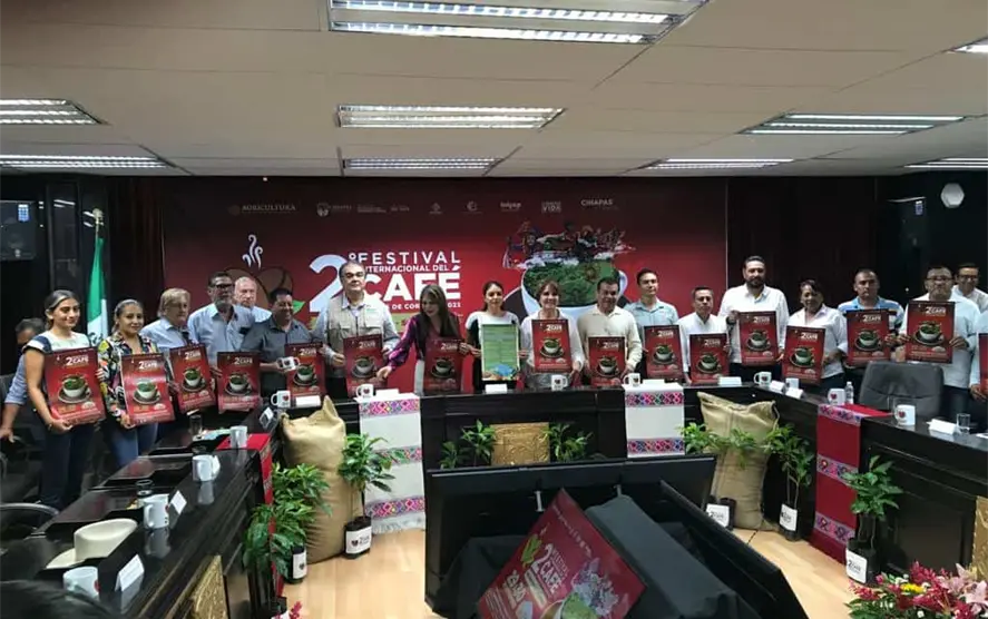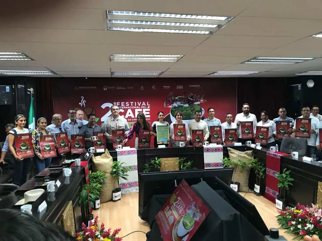 Autoridades del gobierno de la entidad y el Ayuntamiento de Tapachula ofrecieron una rueda de prensa para anunciar el 2º. Festival Internacional del Café, Chiapas de Corazón 2023 de las regiones Sierra-Soconusco, con el que realizan esfuerzos para mantener el posicionamiento del café chiapaneco en el mercado internacional y nacional mismo que tendrá lugar en 29 y 30 de noviembre.