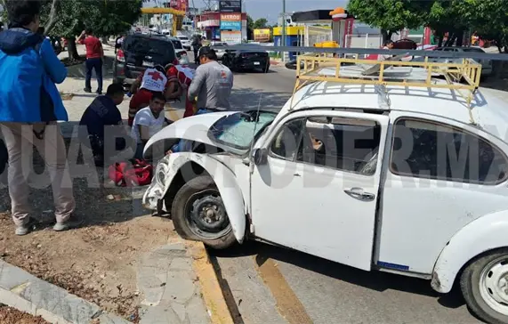Dos personas lesionadas y daños materiales cuantiosos dejó como saldo un aparatoso accidente de tránsito sobre el libramiento Sur, a la altura de 15a Poniente, en la ciudad de Tuxtla Gutiérrez.