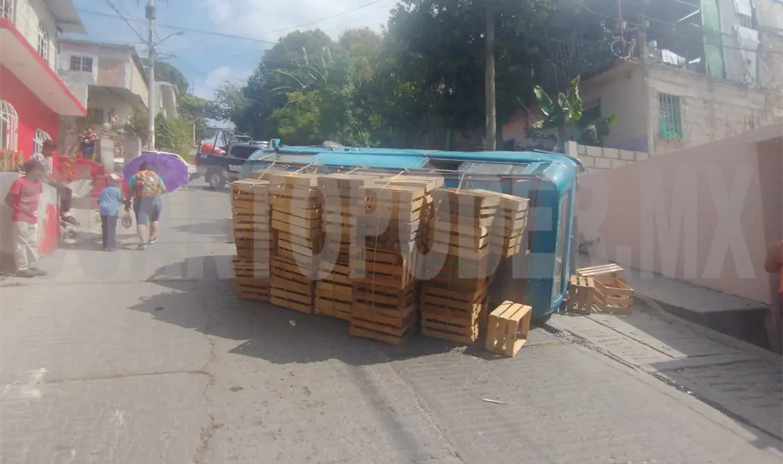 Una aparatosa volcadura saldó con dos personas malheridas y daños materiales valuados en varios miles de pesos, justo en la rampa de la colonia Patria Nueva en la capital Tuxtla Gutiérrez, después del mediodía del martes.