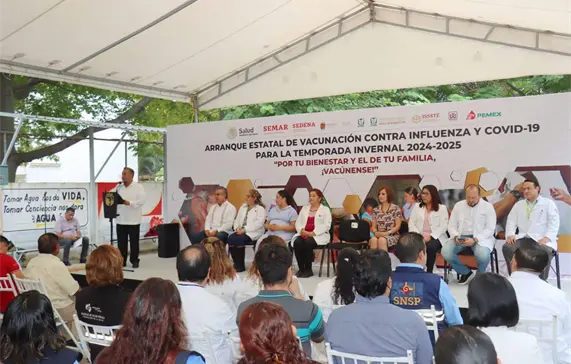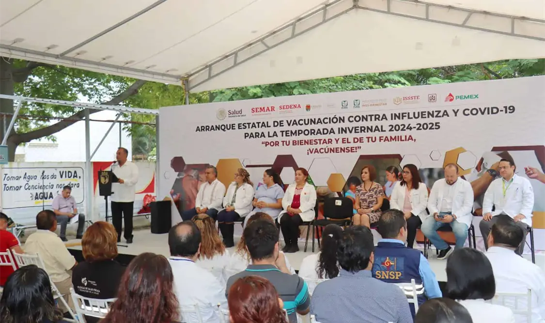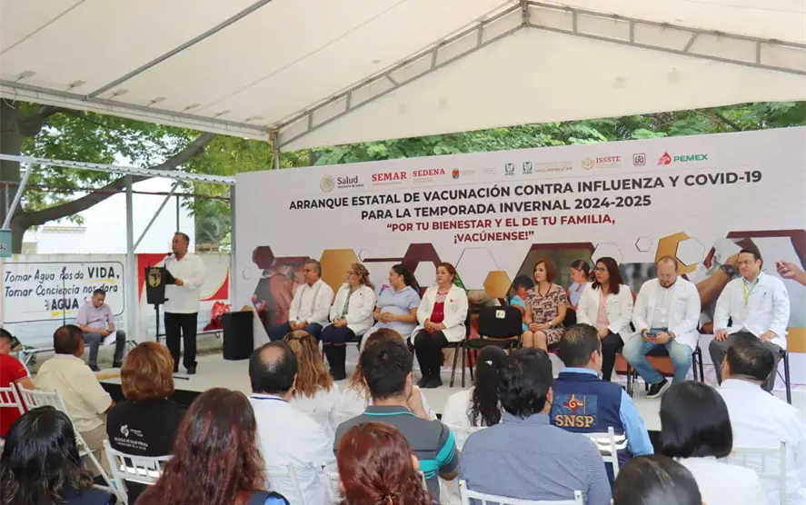 El secretario de Salud del estado, Francisco Arturo Mariscal Ochoa, encabezó el arranque de la Campaña Estatal de Vacunación contra Influenza, COVID-19 y Neumococo para la Temporada Invernal 2024-2025, cuyo propósito es proteger a los grupos vulnerables de estas infecciones respiratorias agudas, que si se complican pueden causar la muerte.