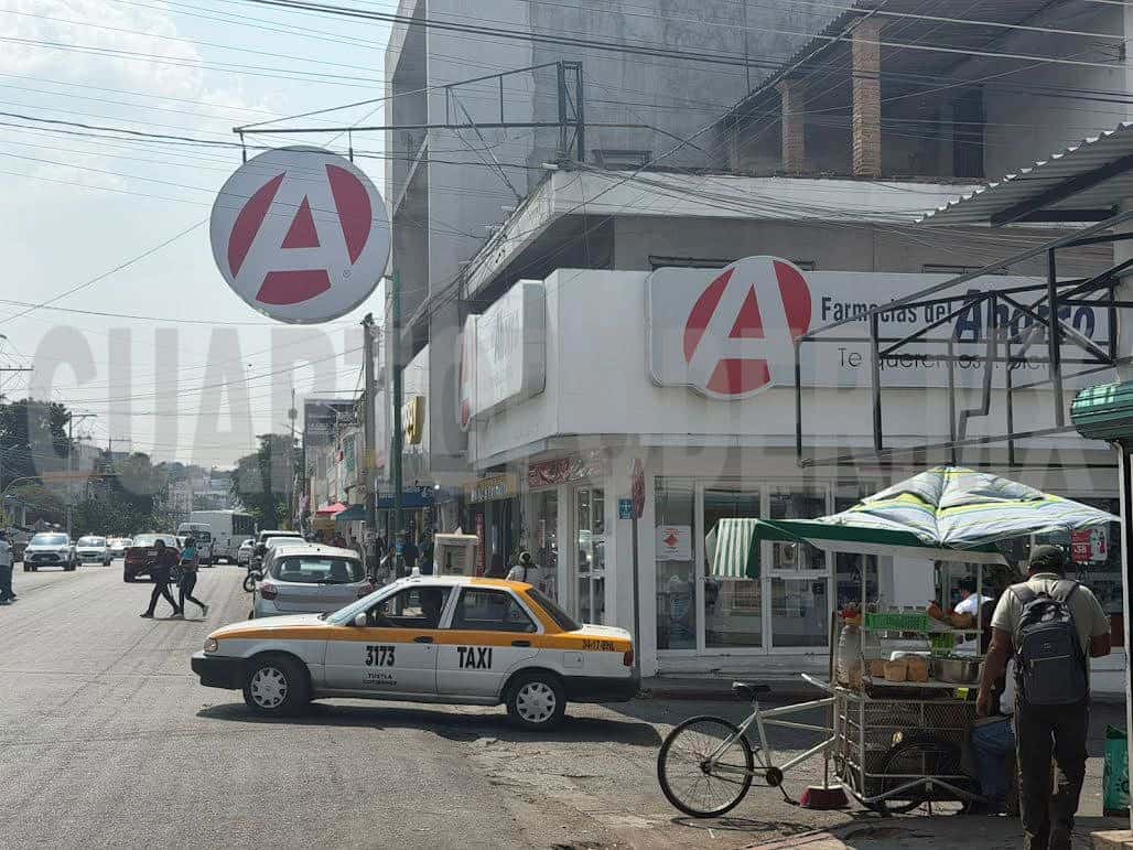 Sujetos portando armas de fuego amagaron a empleados de una sucursal de Farmacias del Ahorro, situada en el primer cuadro de Tuxtla Gutiérrez, logrando llevarse mercancía y huyendo en un transporte público en modalidad de taxi.