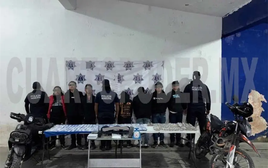 La Fiscalía General del Estado (FGE), en coordinación con la Secretaría de Seguridad del Pueblo (SSP), el grupo Fuerza de Reacción Inmediata Pakal (FRIP) y la Policía Municipal, detuvieron en flagrancia a Moisés “N”, Teodolfo “N”, Emilio “N”, Daniel “N” y José “N”. Derivado de la inspección del sitio, se les aseguraron 315 bolsitas con cocaína; 130 bolsitas con cristal; 125 bolsitas con las características de la piedra; una bolsa negra con 173 bolsitas con marihuana.