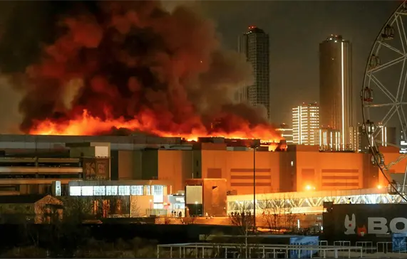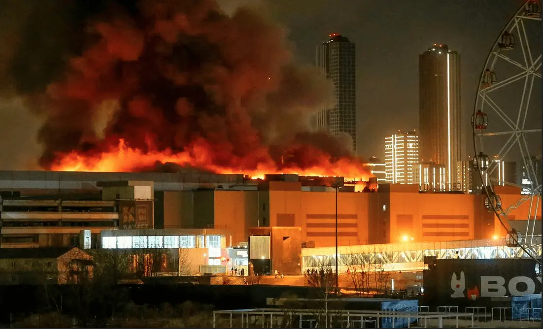 "Los combatientes del Estado Islámico atacaron una gran agrupación de cristianos en la ciudad de Krasnogorsk, en las afueras de la capital rusa, Moscú, y mataron e hirieron a cientos de personas y causaron una gran destrucción en el lugar antes de retirarse a sus bases de manera segura", informó Amaq en su canal de Telegram.
