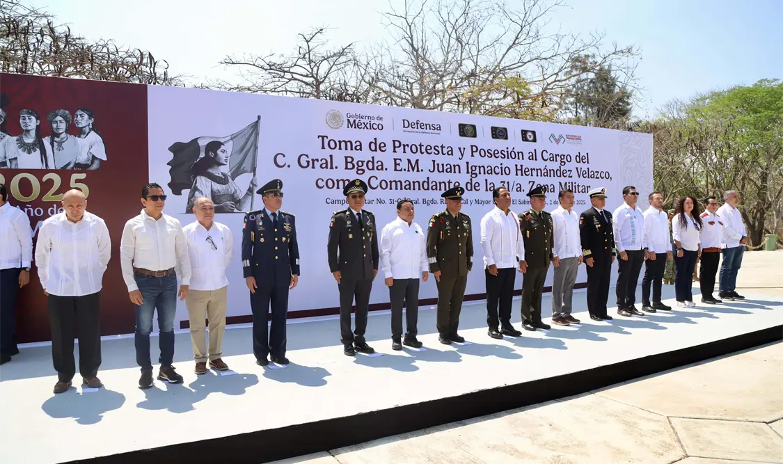 El magistrado presidente del Poder Judicial del Estado, Juan Carlos Moreno Guillén, asistió junto al gobernador de Chiapas, Eduardo Ramírez Aguilar, a la Ceremonia de Toma de Posesión del nuevo comandante de la 31 Zona Militar, General de Brigada E. M. Juan Ignacio Hernández Velasco, en las instalaciones del Campo Militar Número 31-C de Berriozábal.