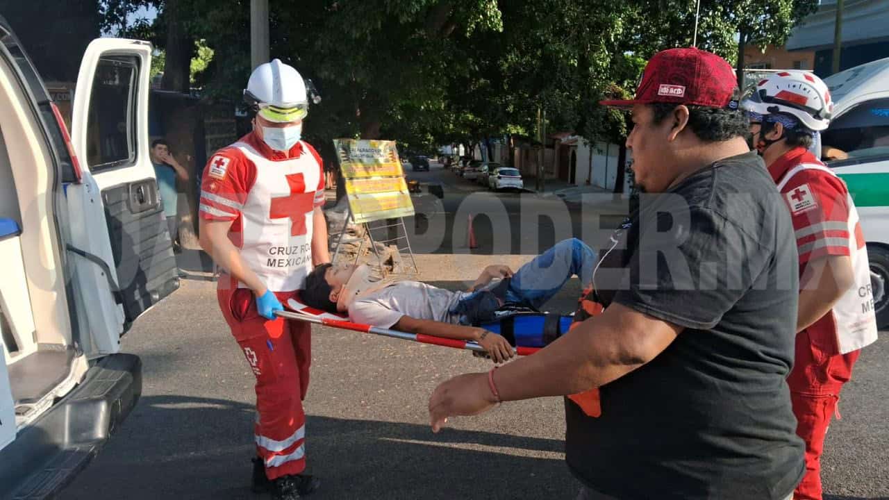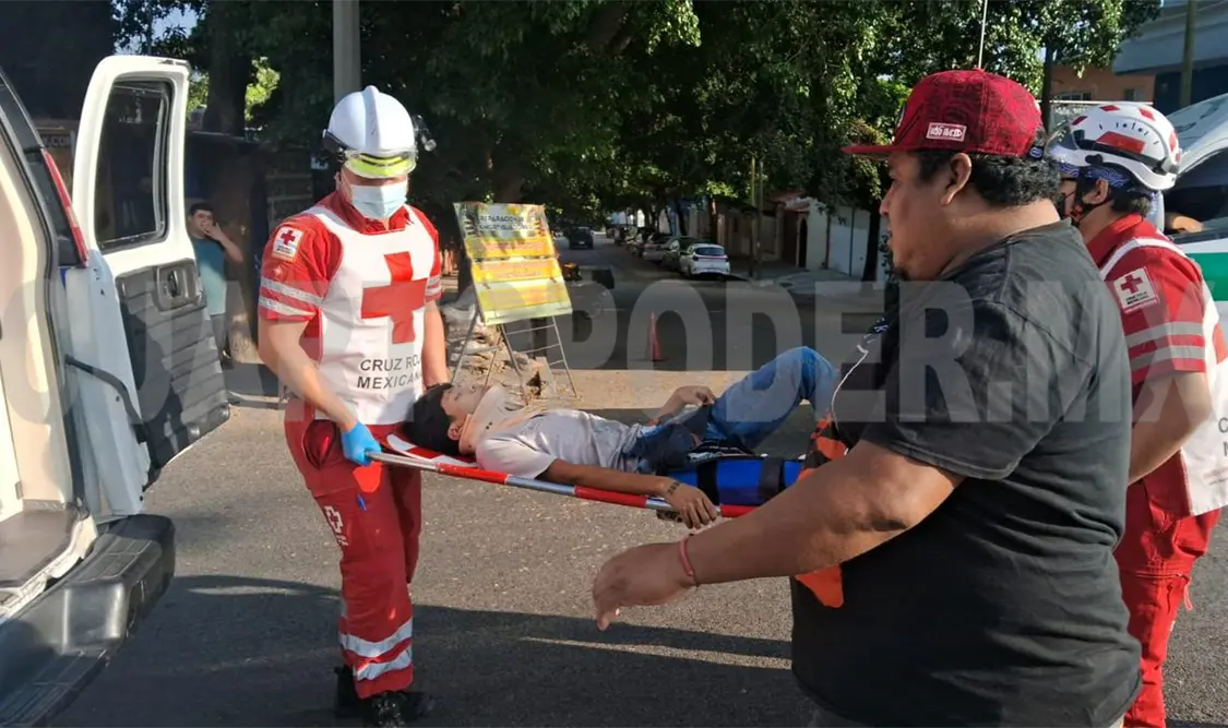 Un motociclista, identificado como Bryan de Jesús “N” (19 años), resultó con una triple fractura después de chocar contra un vehículo de transporte público que circulaba en sentido contrario. El percance ocurrió en la 9.ª avenida Sur y calle 12 de Octubre de la colonia Bienestar Social, en la capital Tuxtla Gutiérrez.