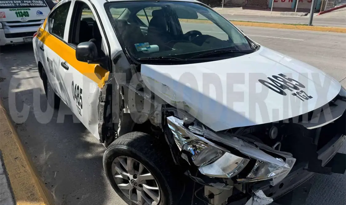 TUXTLA GUTIÉRREZ. Colisionan transportes públicos sobre el libramiento Sur a la altura de la 11.ª Poniente , y un taxi acabó destrozado de la parte frontal.