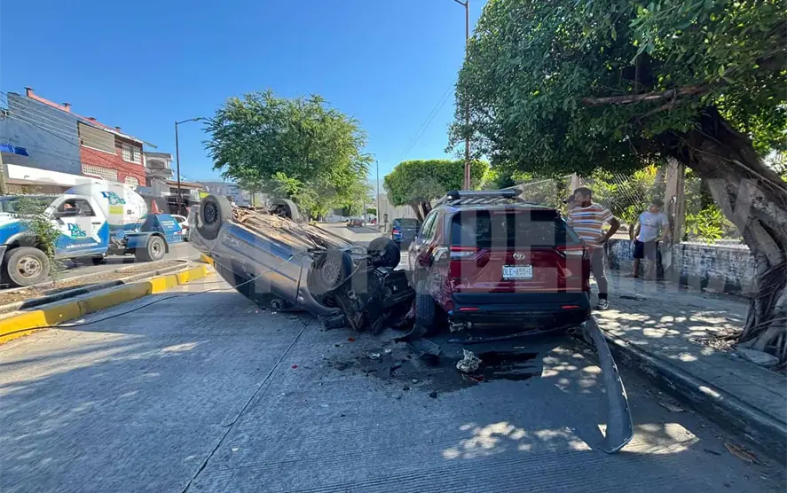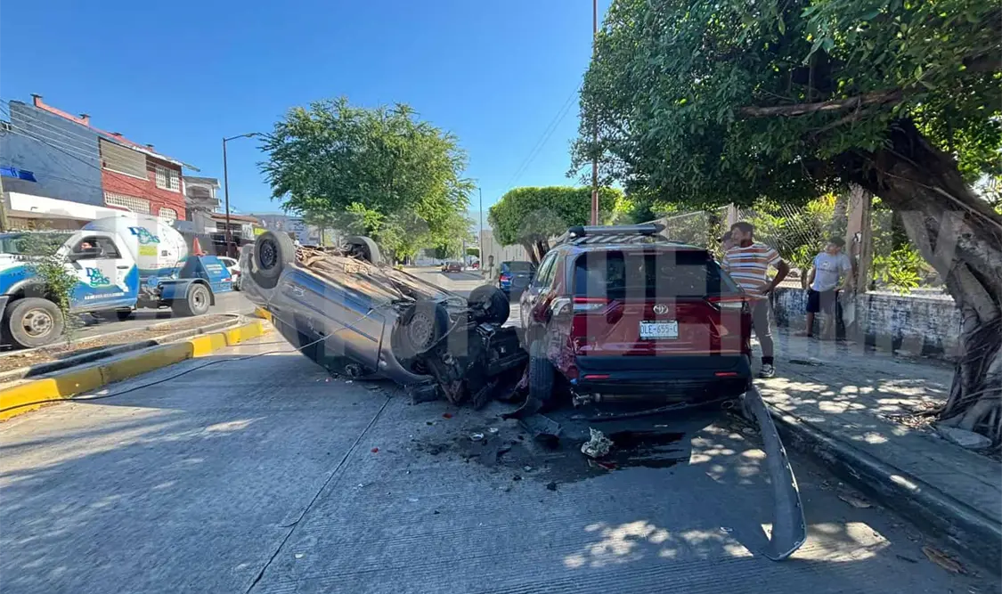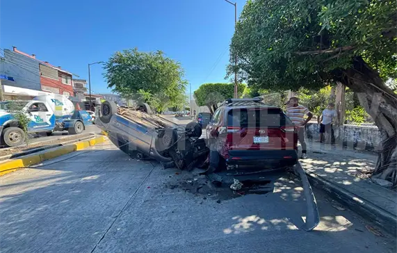 A pesar de lo aparatoso de un accidente en donde un automóvil terminó volcado, no hubo personas lesionadas, aunque los daños materiales ascendieron a varias decenas de miles de pesos, esto en el municipio de Tapachula.