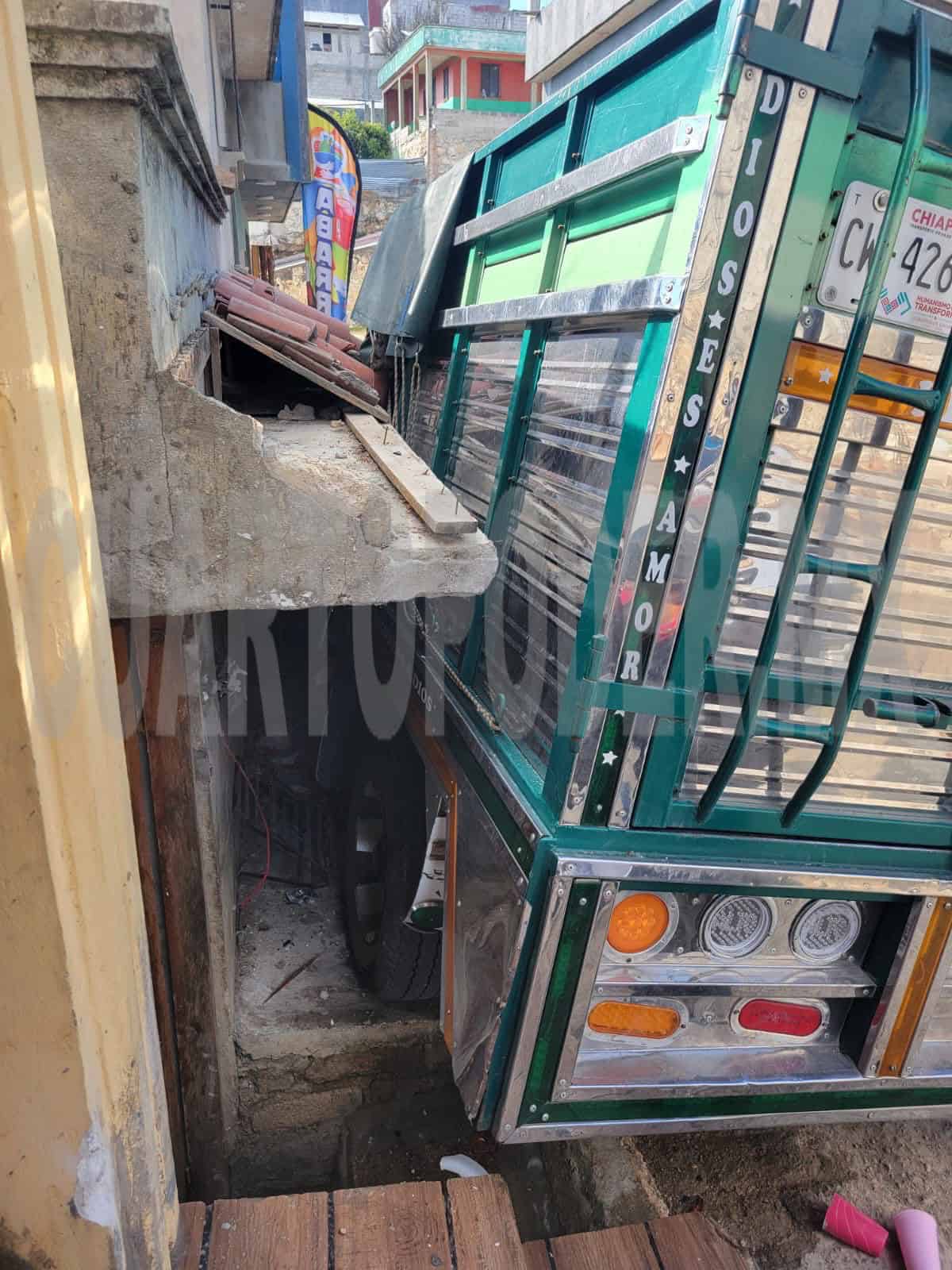La tarde del viernes en la zona norte del municipio de San Cristóbal de Las Casas, una camioneta de carga presuntamente se quedó sin frenos al presentar una falla mecánica, lo que provocó que se estampara en una vivienda y dejara cuantiosas pérdidas materiales.