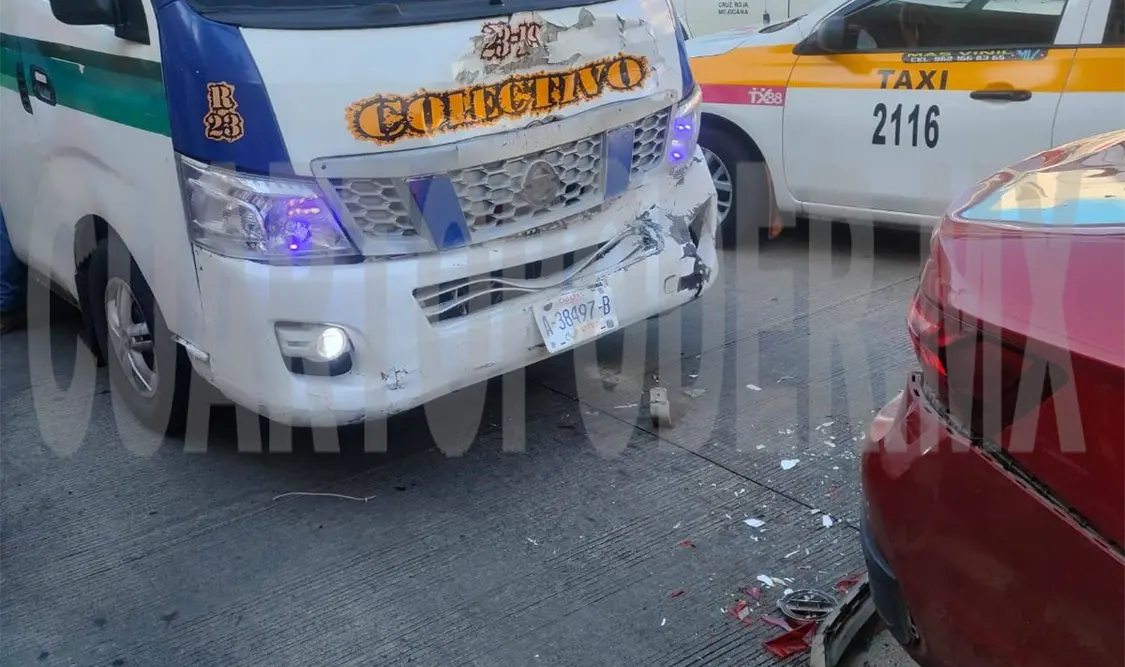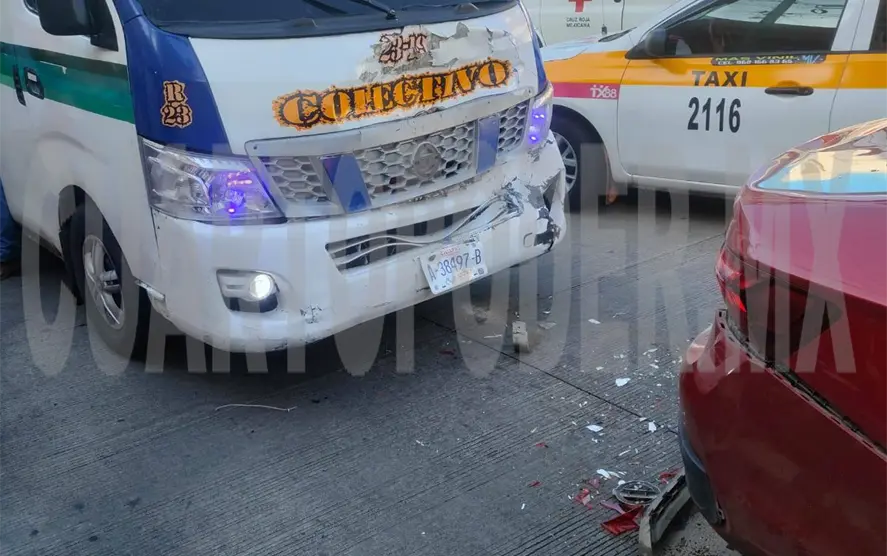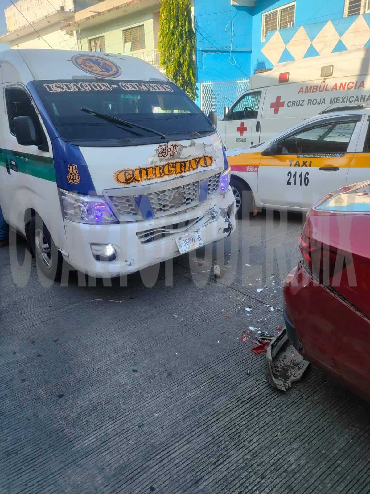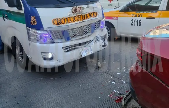 Durante la mañana del martes sucedió un aparatoso accidente vial en pleno centro de Tapachula, luego de que una unidad del transporte público en modalidad de colectivo se viera involucrada en un choque múltiple que dejó como saldo una persona lesionada y cuantiosos daños materiales.
