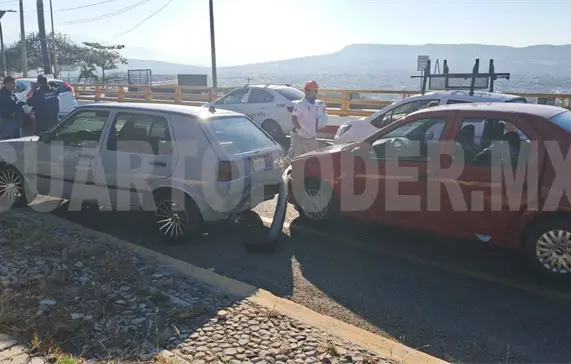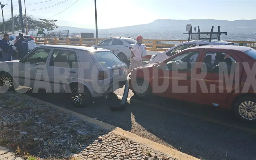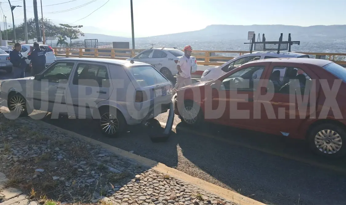 Dos personas lesionadas, entre ellas un menor de edad, fueron el saldo de un accidente de tránsito múltiple sucedido sobre el libramiento Norte a la altura del mirador Los Amorosos, en la capital Tuxtla Gutiérrez, durante la mañana del jueves.