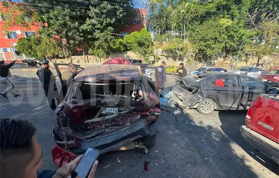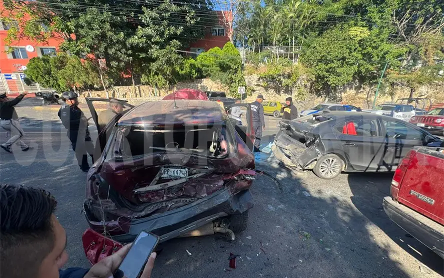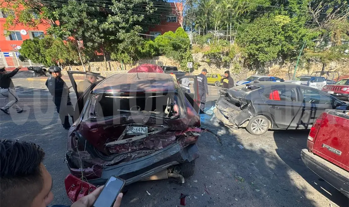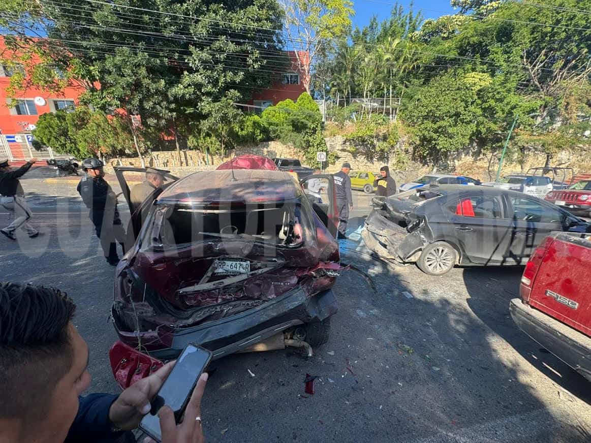 Seis personas lesionadas y daños materiales valuados por miles de pesos dejó como saldo un accidente carretero múltiple suscitado sobre la vía Tuxtla Gutiérrez-Copoya, a la altura del Colegio La Paz.
