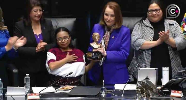 México.- La indígena tsotsil, Cecila López Pérez, recibió de parte del Senado de la República el reconocimiento "Elvia Carrillo Puerto 2025", ello por su labor de tres décadas en la defensa de los derechos humanos mujeres de pueblos originarios de Chiapas.
