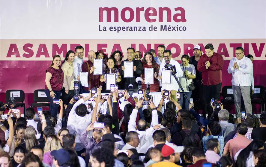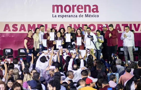 El gobernador electo de Chiapas, Eduardo Ramírez Aguilar, asistió como invitado a la Asamblea Informativa del Comité Ejecutivo Nacional (CEN) de Morena, que se realizó en Tuxtla Gutiérrez, Chiapas.