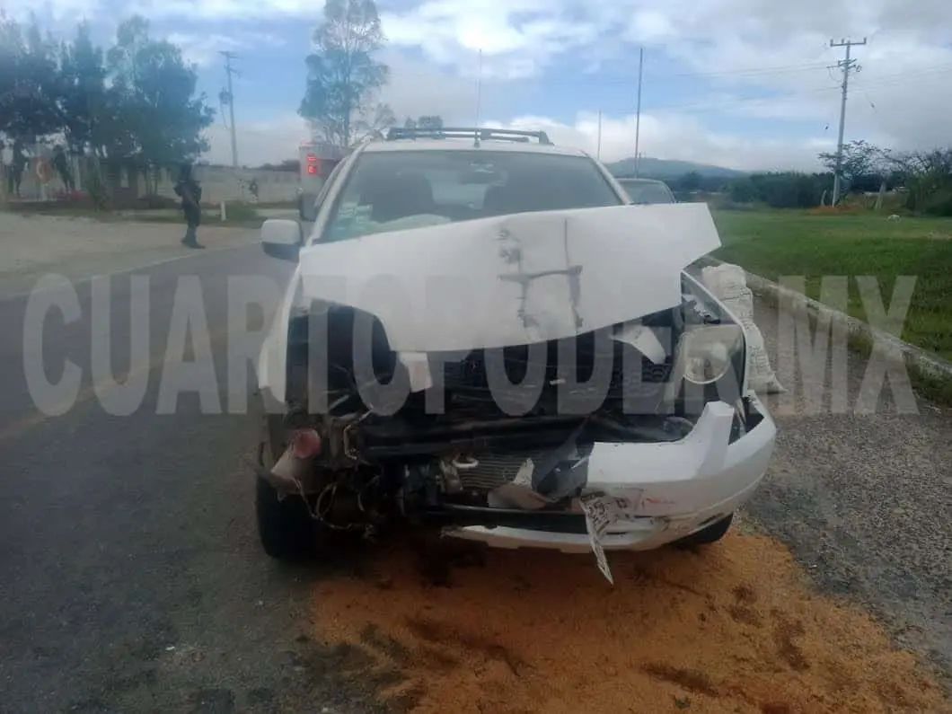 Con daños materiales se saldó un accidente la mañana de ayer, que se registró sobre la carretera que conduce al antiguo aeropuerto de Comitán, San Juan Copalar, en donde se involucraron una camioneta y un camión de una empresa refresquera.