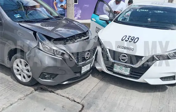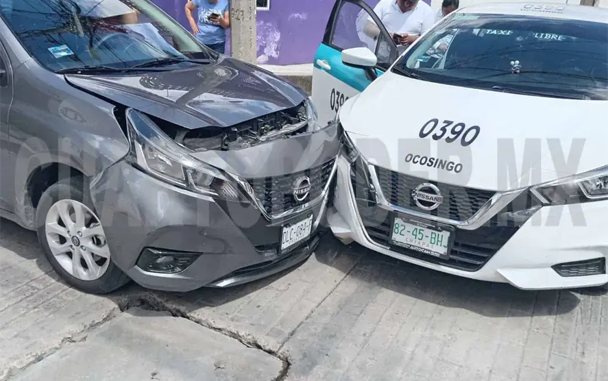 Lo anterior sucedió el jueves en la cabecera municipal de Ocosingo sobre la 4.ª avenida Sur Oriente del barrio La Candelaria, teniendo como involucrados a un taxi del sitio Ocosingo, marcado con el número económico 0390, y a un automóvil Nissan Versa, color gris.