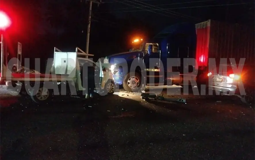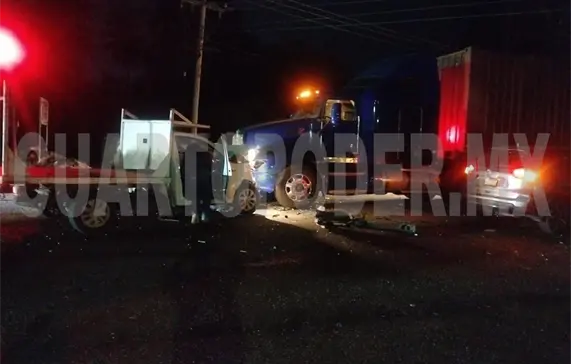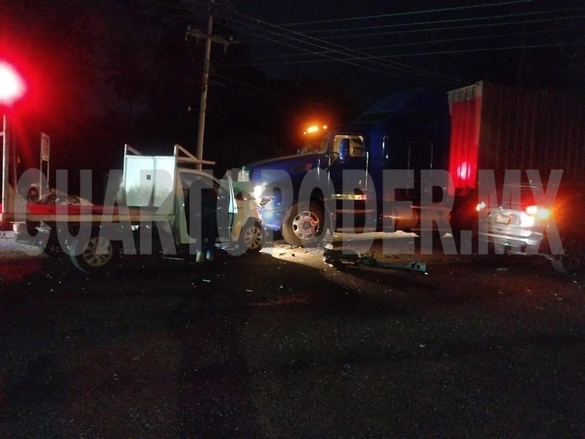 Tres lesionados y daños materiales de muy alta consideración fue el saldo que arrojó el fuerte accidente en el que se vieron involucradas dos camionetas y un tráiler que se encontraba estacionado, sobre el libramiento Sur de Tapachula.
