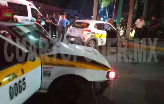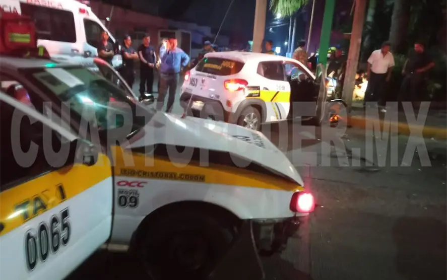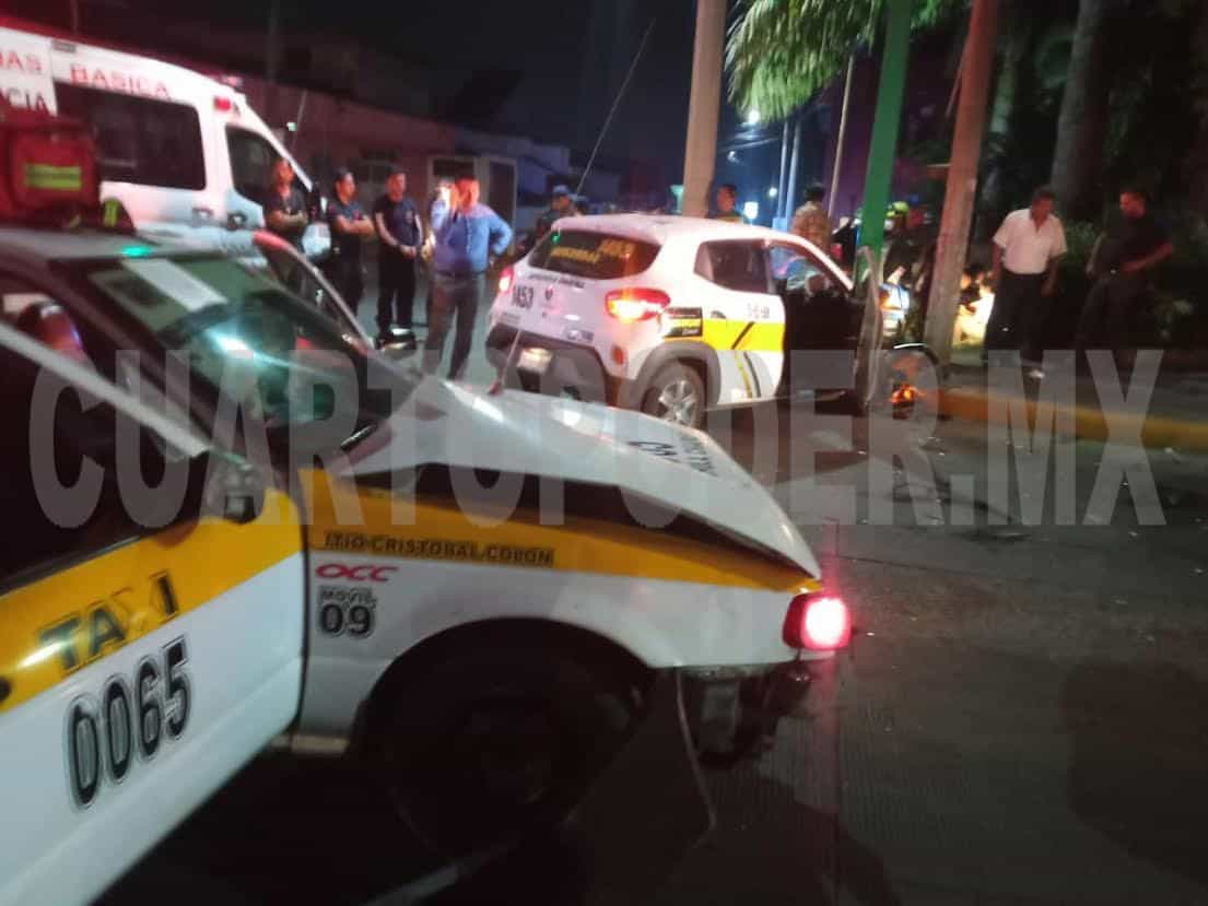 Dos taxis se vieron involucrados en un fuerte choque en el centro de Tapachula, cuando uno de los conductores no respetó el alto que le marcaba el semáforo, dejando como saldo a una persona prensada en el interior de la unidad, misma que fue rescatada por elementos del Cuerpo de Bomberos y trasladada al hospital regional.
