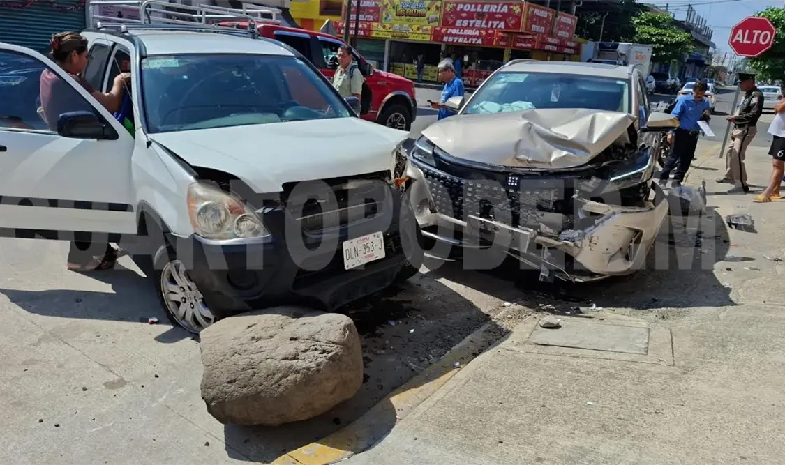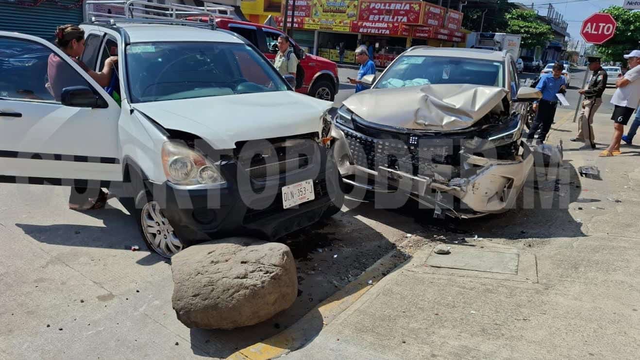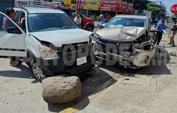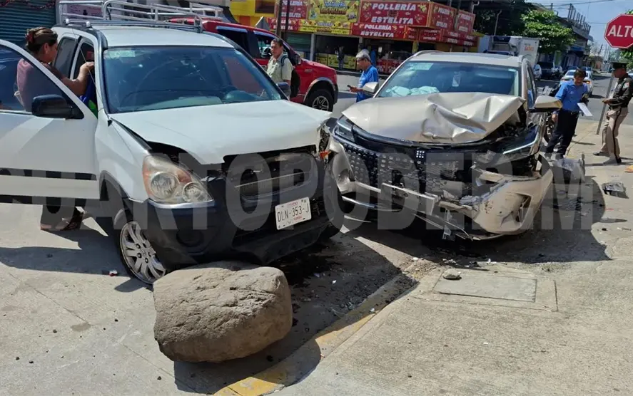Daños materiales por varios miles de pesos dejó un fuerte choque en el que se vieron involucradas dos camionetas, en el cruce de la 13ª. avenida Sur y 20ª. calle Oriente, en la colonia 16 de Septiembre, al sur-oriente de Tapachula.