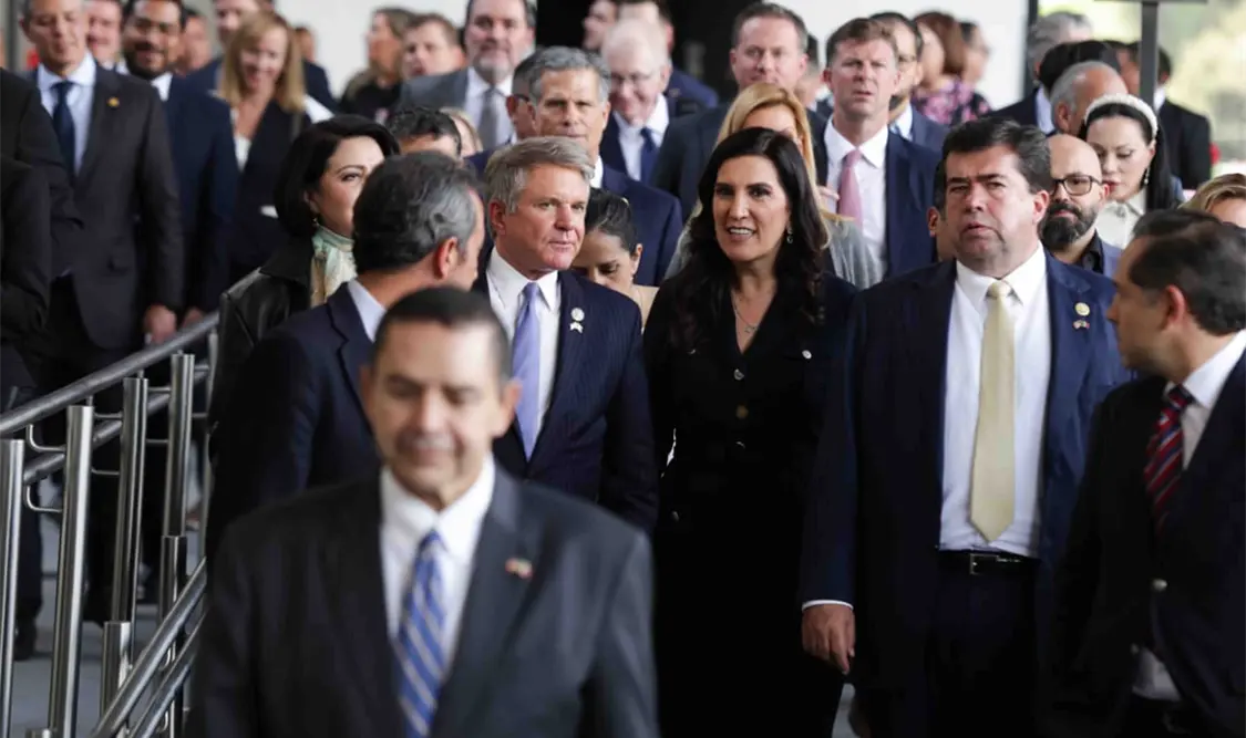 México.- En reunión privada, en San Lázaro, diputados de todos los grupos parlamentarios, encabezados por la presidenta de la Mesa Directiva, Kenia López Rabadán, se reunieron con ocho legisladores del Congreso de Estados Unidos para dialogar sobre la relevancia del Tratado de Libre Comercio entre México, Estados Unidos y Canadá.