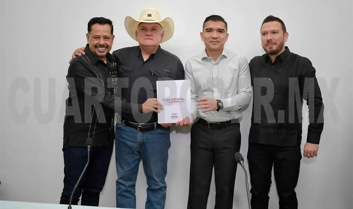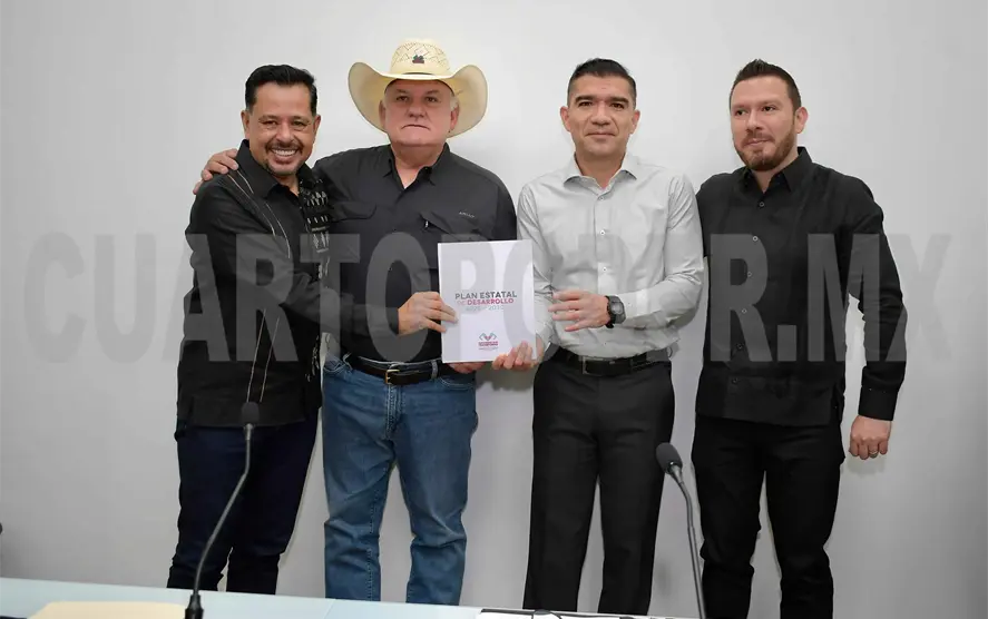 En cumplimiento al mandato constitucional, el presidente de la Mesa Directiva, Luis Ignacio Avendaño Bermúdez y el presidente de la Junta de Coordinación Política, Mario Guillén Guillén, recibieron de manos del secretario de Finanzas del Estado, Manuel Pariente Gavito, para su análisis y posterior dictamen, el Plan Estatal de Desarrollo 2025-2030.
