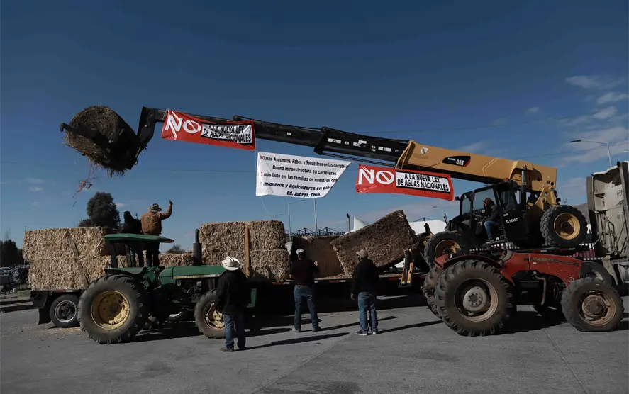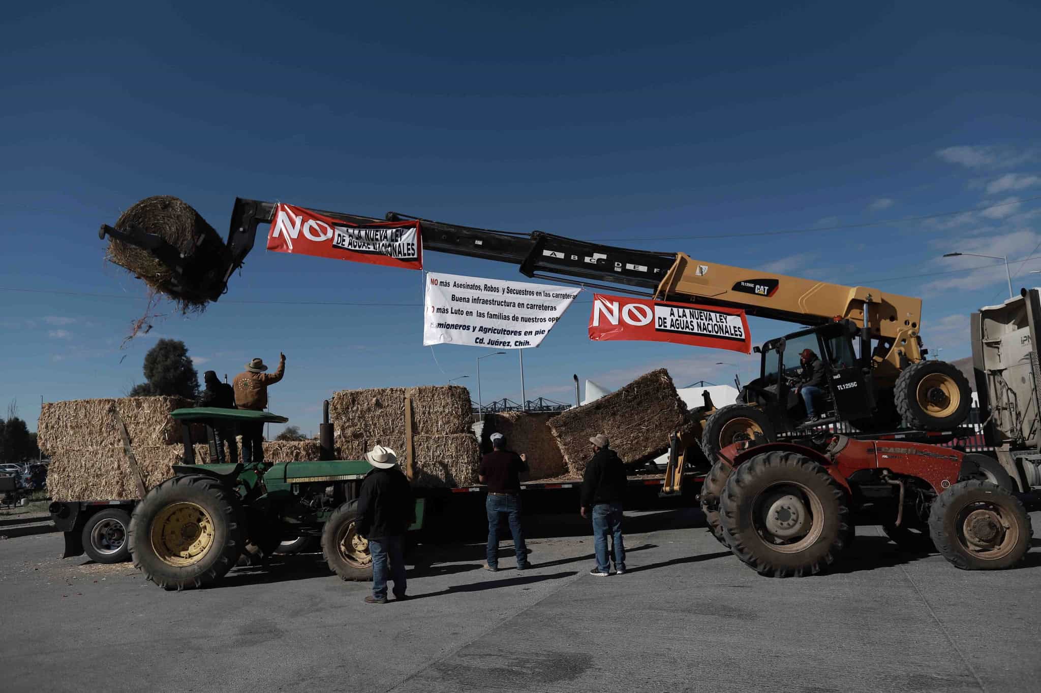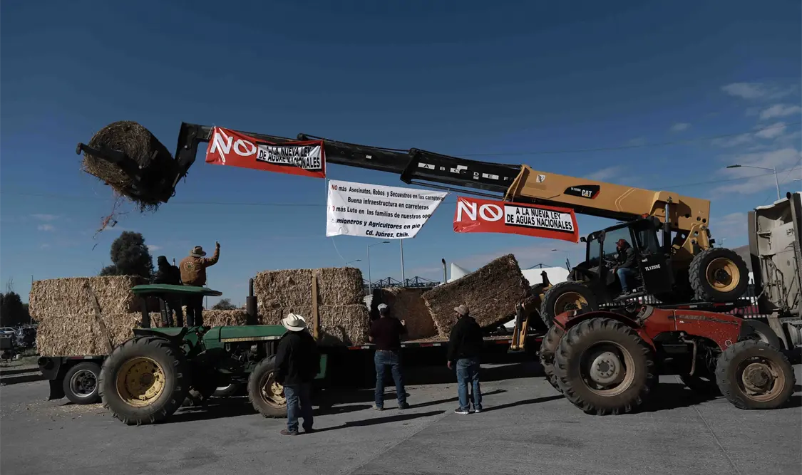 México.- Los cruces internacionales de carga continúan bloqueados por los agricultores en Ciudad Juárez, Chihuahua.