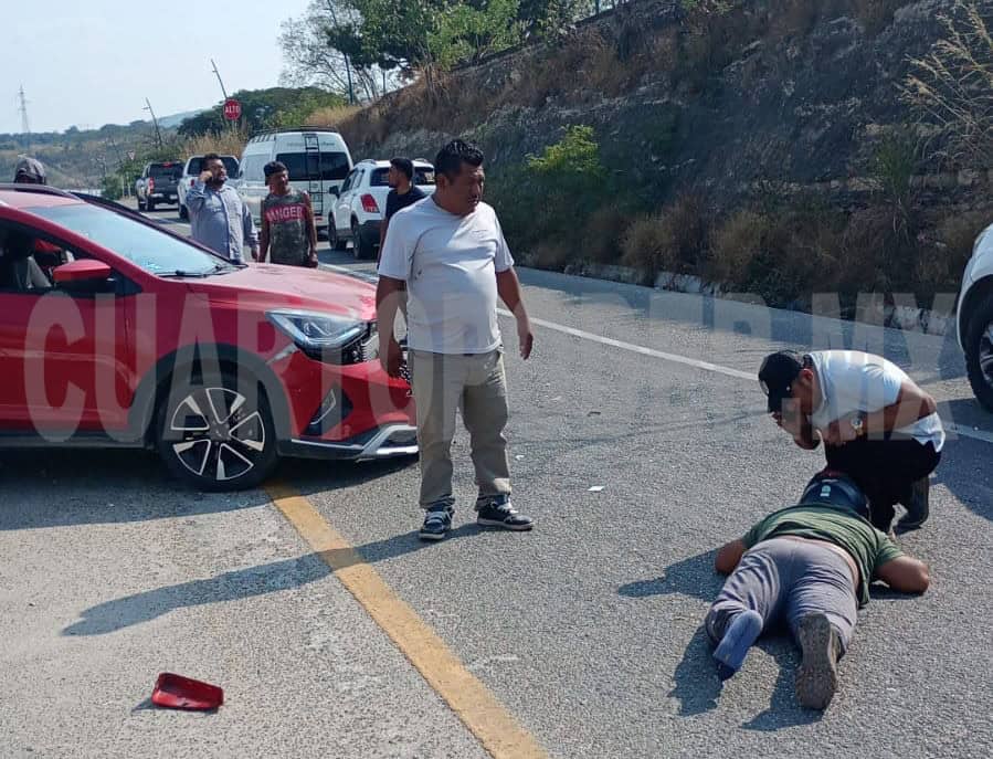 Gravemente lesionado fue como resultó un motociclista debido a un presunto corte de circulación sobre la carretera Tuxtla Gutiérrez-La Angostura, a la altura del fraccionamiento Jardines del Grijalva, en la demarcación de Chiapa de Corzo.