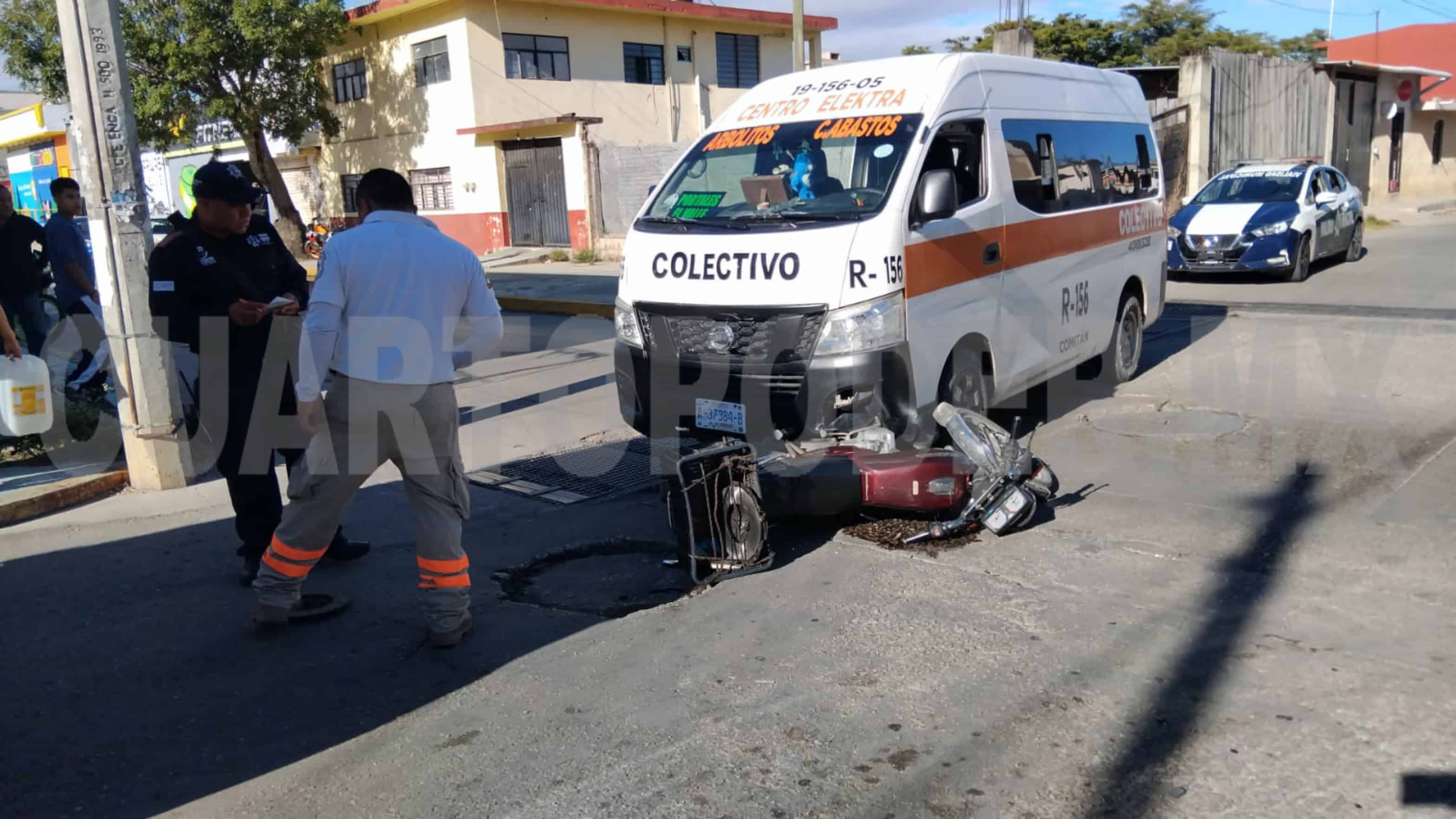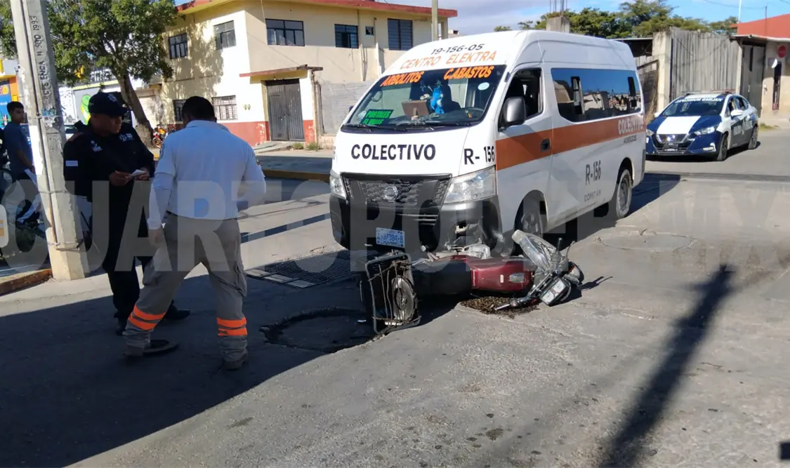 Policontundido fue como resultó un motociclista al ser atropellado por un colectivo la tarde del lunes en el municipio de Comitán. El incidente movilizó a paramédicos y agentes de Tránsito Municipal para atender la emergencia.