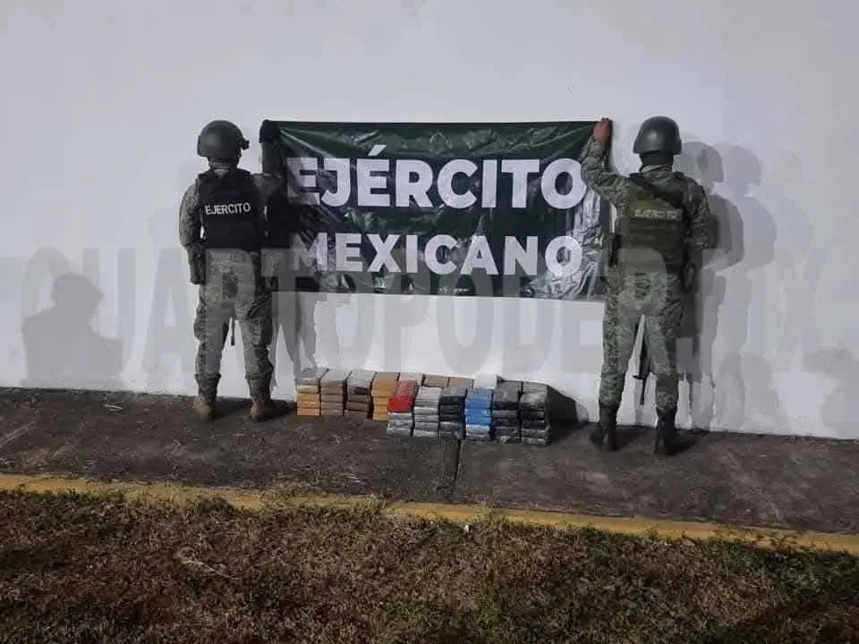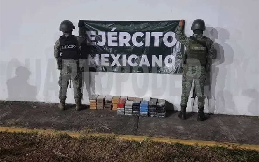 Al menos 80 kilogramos de cocaína, que se encontraban en el interior de un vehículo abandonado, fueron asegurados por elementos de la Secretaría de la Defensa Nacional (Sedena) en el municipio de Tapachula.