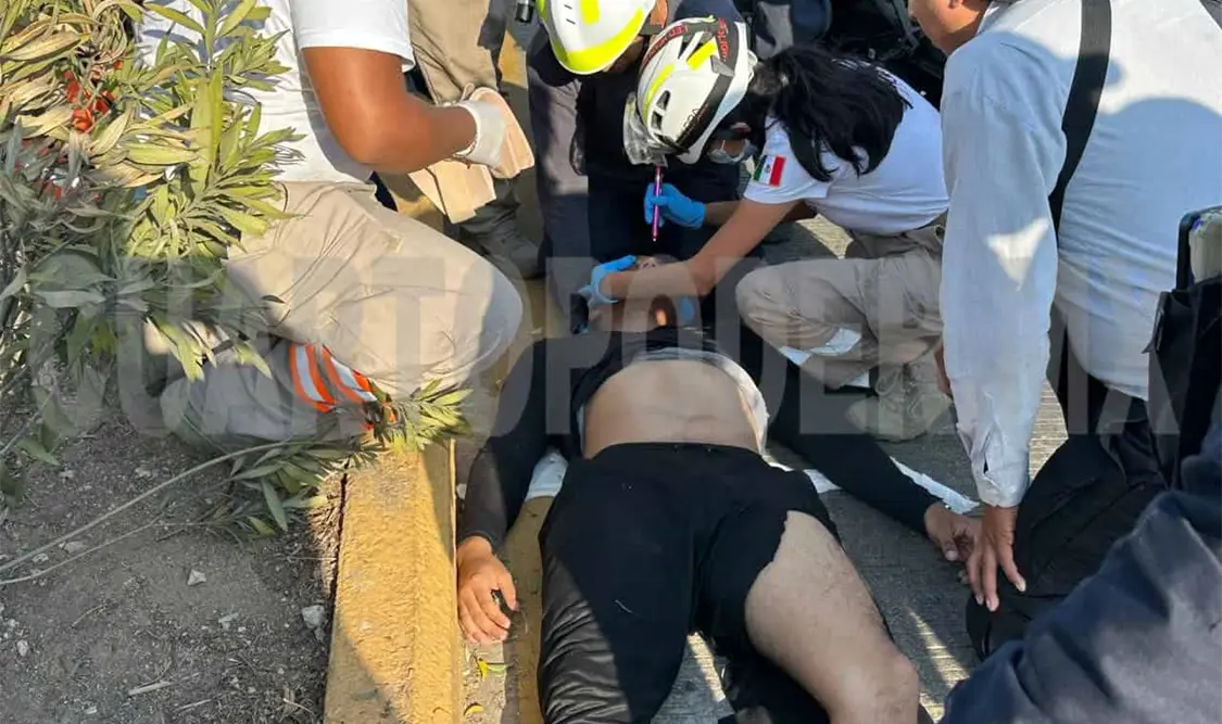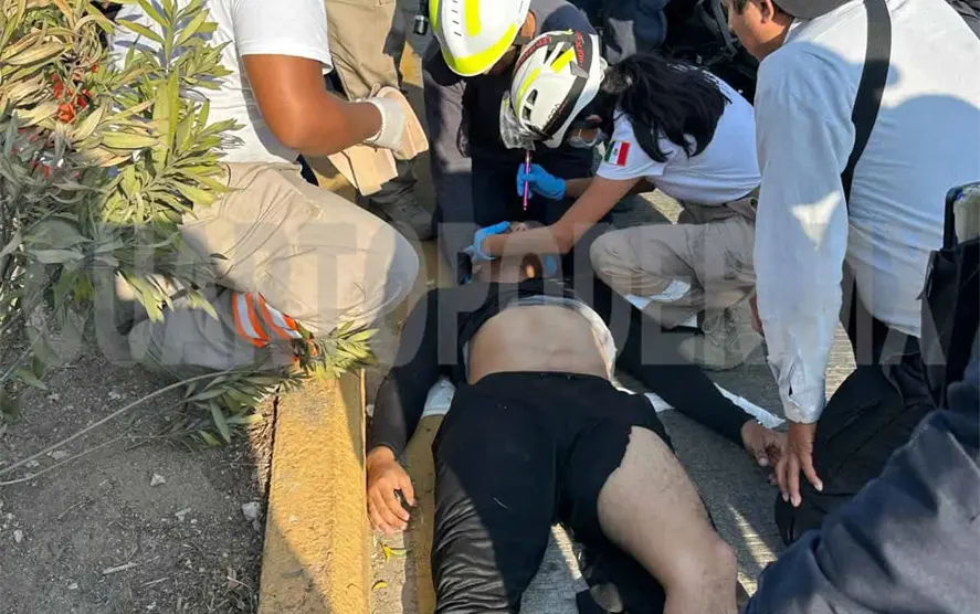 Con múltiples lesiones y cuadros de convulsiones terminó un joven motociclista luego de derrapar sobre el bulevar Belisario Domínguez, frente al bulevar del anillo Periférico Sur, en la capital Tuxtla Gutiérrez, la tarde del martes.