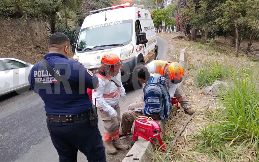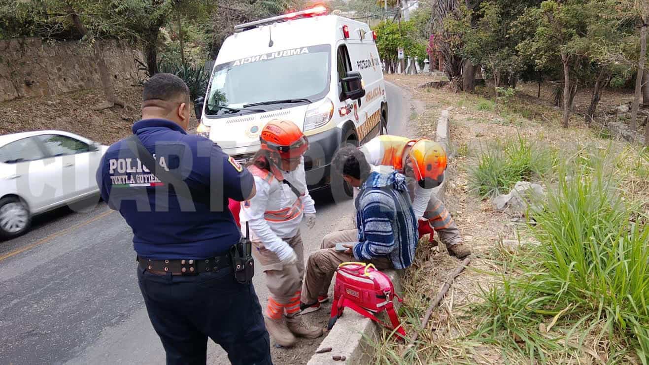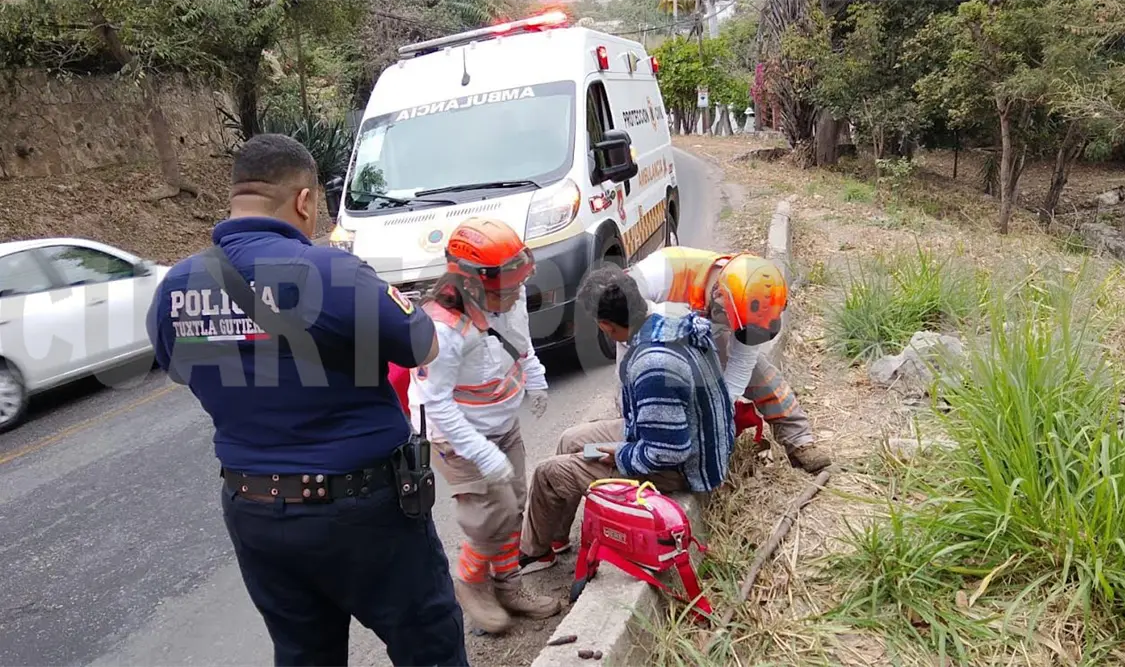 Un motociclista resultó lesionado tras derrapar presuntamente por el pavimento mojado, a la altura del hospital San Lucas, sobre el tramo carretero Tuxtla-Copoya.