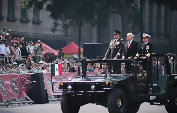 El desfile militar comenzó al filo de las 10 de la mañana, cuando López Obrador y Sheinbaum pasaron revista a los contingentes que se encontraban en la Plaza de la Constitución para que después comenzar el despliegue de los contingentes que en conjunto sumaron a 15 mil 590 integrantes (22 por ciento de los cuales son mujeres) mientras que por los aires surcaron aviones de la Fuerza Aérea Mexicana.