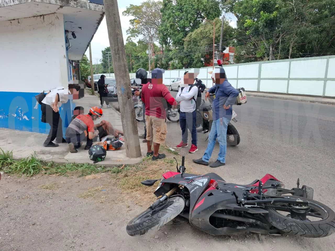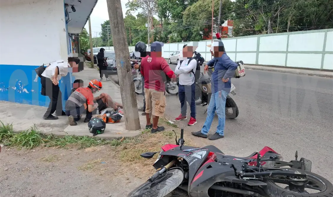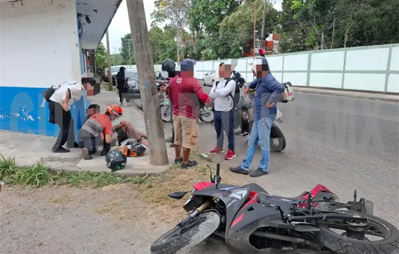 El choque de dos motociclistas la intersección de la 13.ª avenida Sur y 8.ª calle Oriente de la colonia 16 de Septiembre en el municipio de Tapachula, dejó como saldo a los conductores lesionados.