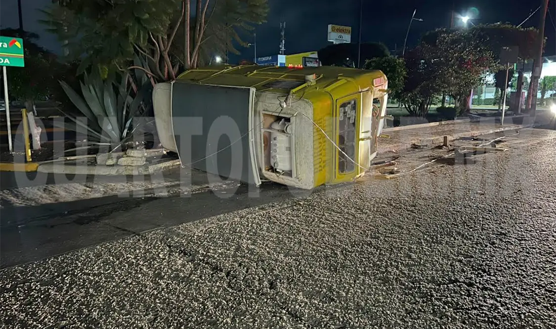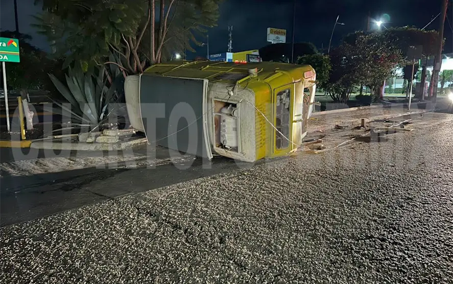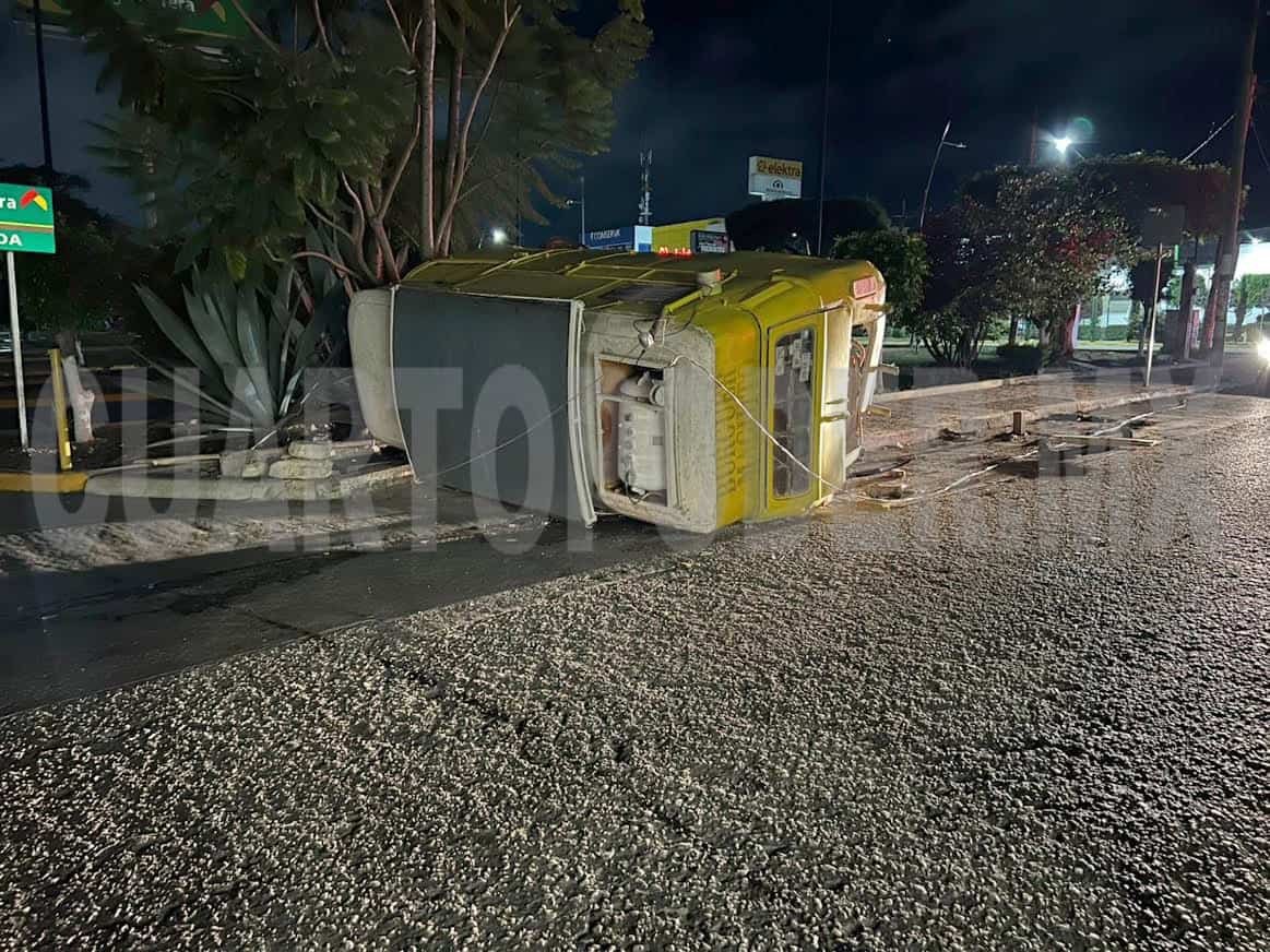 Un Volkswagen tipo combi, con venta de hot dogs terminó volcado sobre la calle tras ser impactado por un ebrio conductor la madrugada de ayer, lo que movilizó a policías de Vialidad de Comitán.