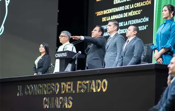 En el Polyfórum convertido en recinto legislativo, el ahora Ejecutivo Estatal envió un mensaje de unidad al pueblo chiapaneco.