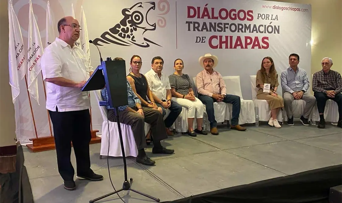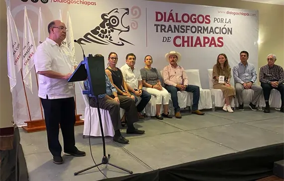 El foro de “Innovación Agrícola en Chiapas” en los que participaron el empresario, agricultor y ganadero Francisco Reyero Fernández; José Antonio Toriello Elorza, productor de café; Christa Luttman Montes, productora de café y cacao; Fernando Rodas Alonso, productor y exportador de mango; Rolando Stivalet Parizot, productor de plátano y palma de aceite; así como Olivia Zwanzinger Paniagua, productora de café, fue coordinado por Marco Antonio Barba Arrocha, quien resaltó que los Diálogos por la Transformación de Chiapas tienen como objetivo recoger las propuestas de los diversos sectores sociales del estado para convertirlas en una ruta para el trabajo de lo que se requiere en los próximos.