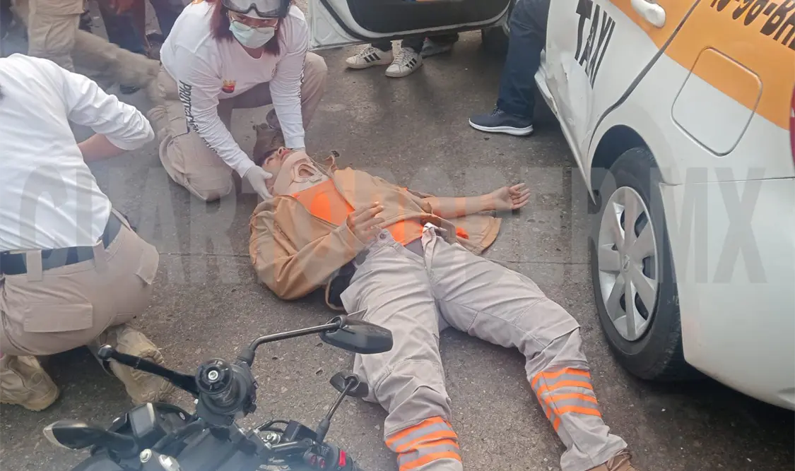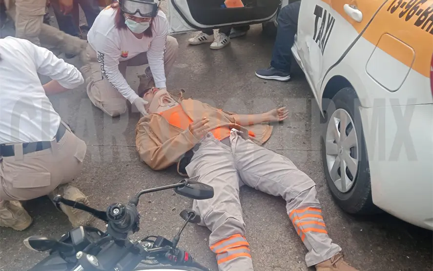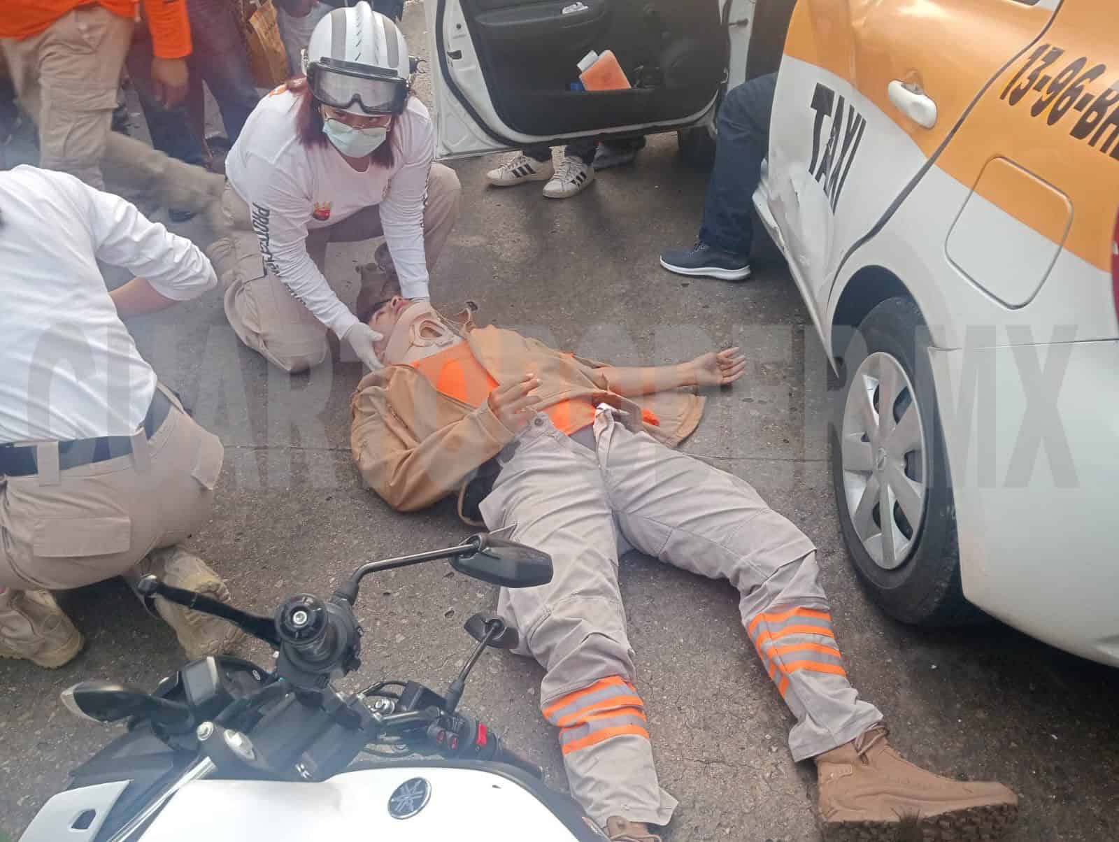 Un elemento motorizado de Protección Civil (PC) Municipal resultó con graves lesiones luego de verse involucrado en un aparatoso accidente ocurrido la mañana del viernes en la zona centro de Tuxtla Gutiérrez.