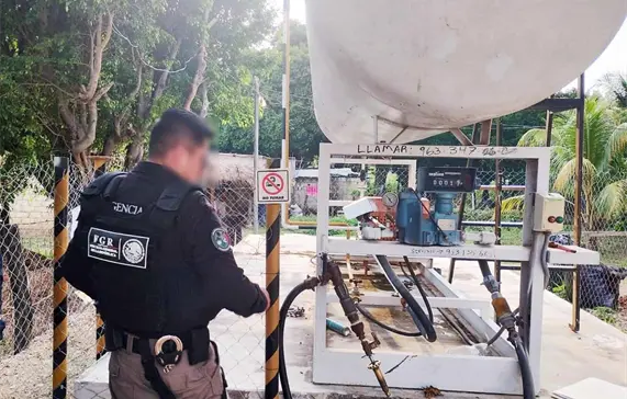 Cabe señalar que cuando se realizó el cateo en un predio ubicado en la Colonia San Vicente La Mesilla, municipio de Tzimol, Chiapas, se contó con el apoyo de elementos de la Secretaría de la Defensa Nacional (SEDENA), Guardia Nacional (GN) y Secretaría de Seguridad, así como de peritos de PEMEX. En el operativo no se detuvo a ninguna persona y pusieron a disposición del MPF lo asegurado.