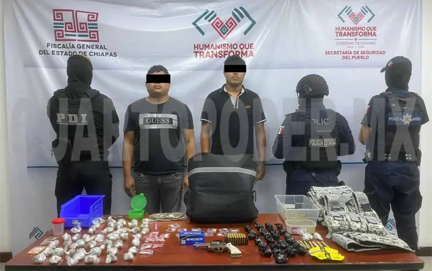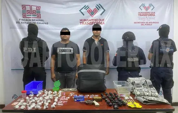 Las autoridades detuvieron a 12 personas; asimismo, aseguraron 102 envoltorios con marihuana y 23 con cocaína; además, 12 envoltorios de nylon con trozos o fragmentos de piedra de cocaína; 400 gramos de greña de marihuana; ocho envoltorios de papel de arroz, cada uno con marihuana; y dos básculas pequeñas, de las llamadas grameras.