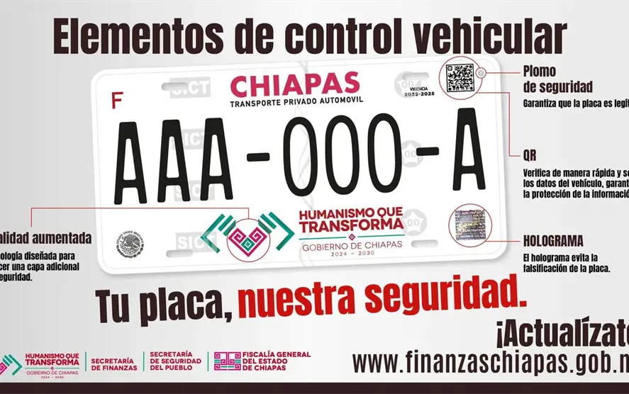 Es importante señalar que las nuevas placas cuentan con tecnología avanzada para reforzar la seguridad, como códigos QR encriptados, hologramas, material retroreflectivo y números de serie únicos. Estas no solo garantizarán su autenticidad, sino que también contribuirán a identificar vehículos involucrados en actividades ilícitas, promoviendo la seguridad de las y los chiapanecos.