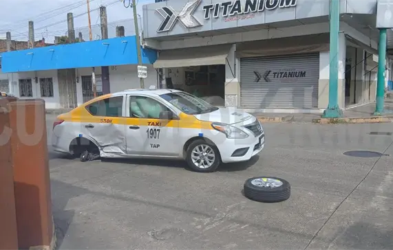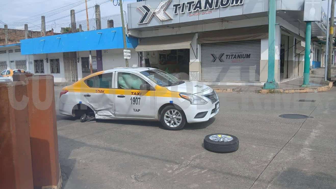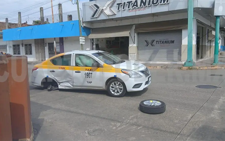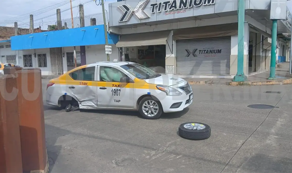 Un fuerte accidente entre un vehículo particular que se dio a la fuga y un taxi, se registró este miércoles en el centro de Tapachula, dejando daños materiales de alta consideración.
