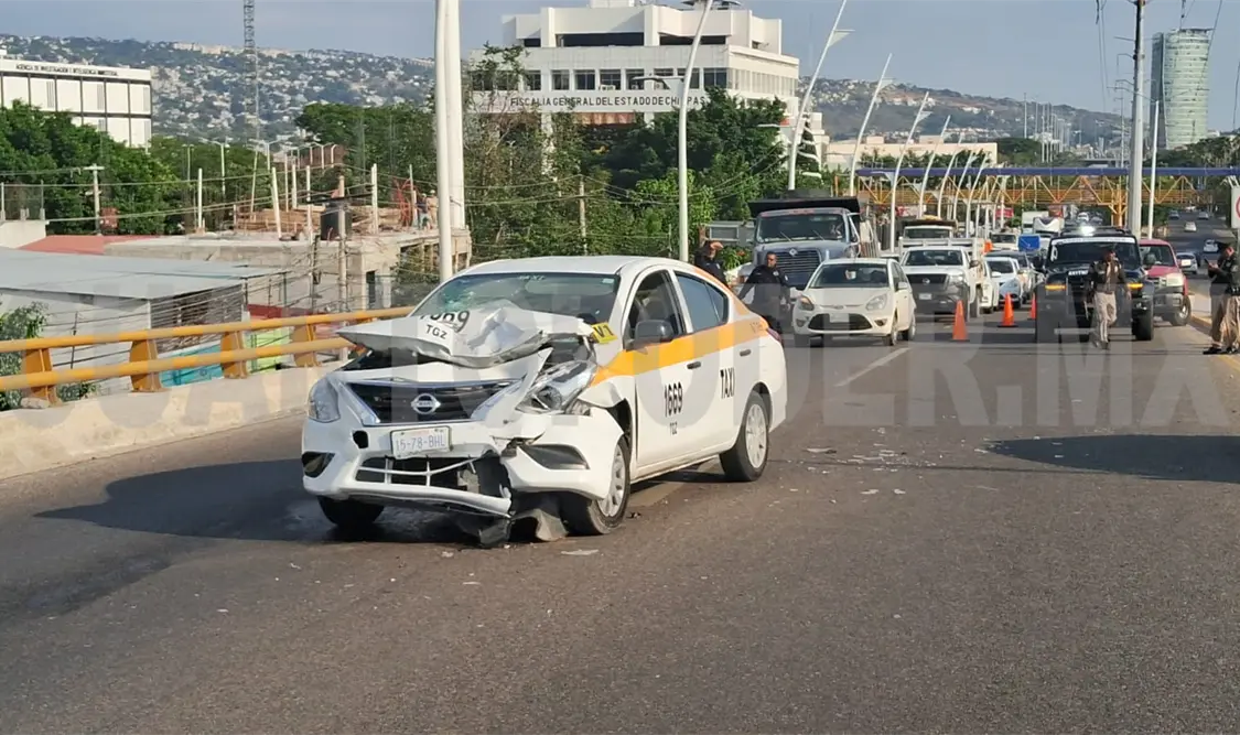 Tres personas acabaron lesionadas durante un fuerte accidente de tránsito ocurrido en el libramiento Norte, en el carril de alta velocidad con dirección oriente a poniente, a la altura del puente de la calzada Fidel Velázquez en la capital Tuxtla Gutiérrez.